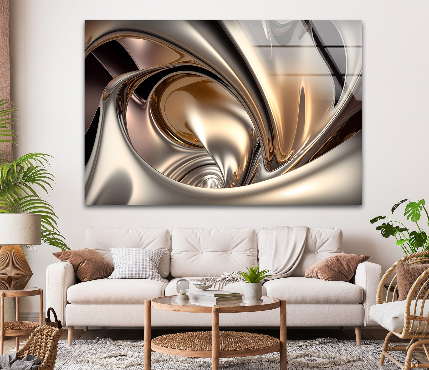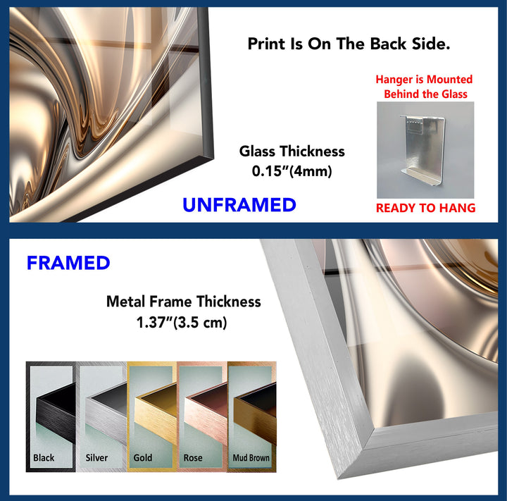 Printed on ultra-gloss premium glass, every highlight, gradient, and metallic ripple is captured with exceptional clarity. Ideal for living rooms, offices, bedrooms, hallways, or upscale commercial interiors, this piece becomes a striking visual centerpiece—sleek, elegant, and artistically immersive.