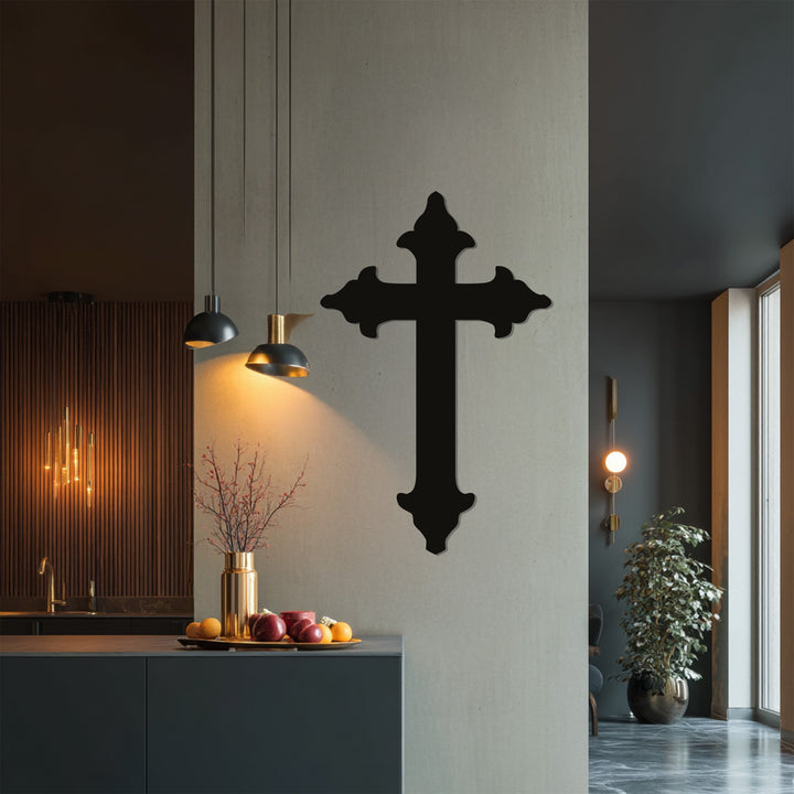 Celebrate faith and timeless design with this Classic Cross Metal Wall Art, crafted with elegant detailing and a bold black finish. Perfect as a religious wall decor piece, this design brings reverence and beauty into your home.