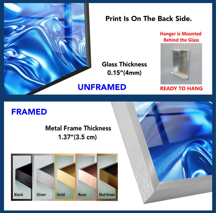 Printed on ultra-gloss premium glass, every ripple, reflection, and metallic contour appears vivid and razor-sharp. Ideal for living rooms, offices, gaming setups, bedrooms, or upscale commercial spaces, this piece instantly becomes a dramatic focal point—sleek, vibrant, and contemporary.