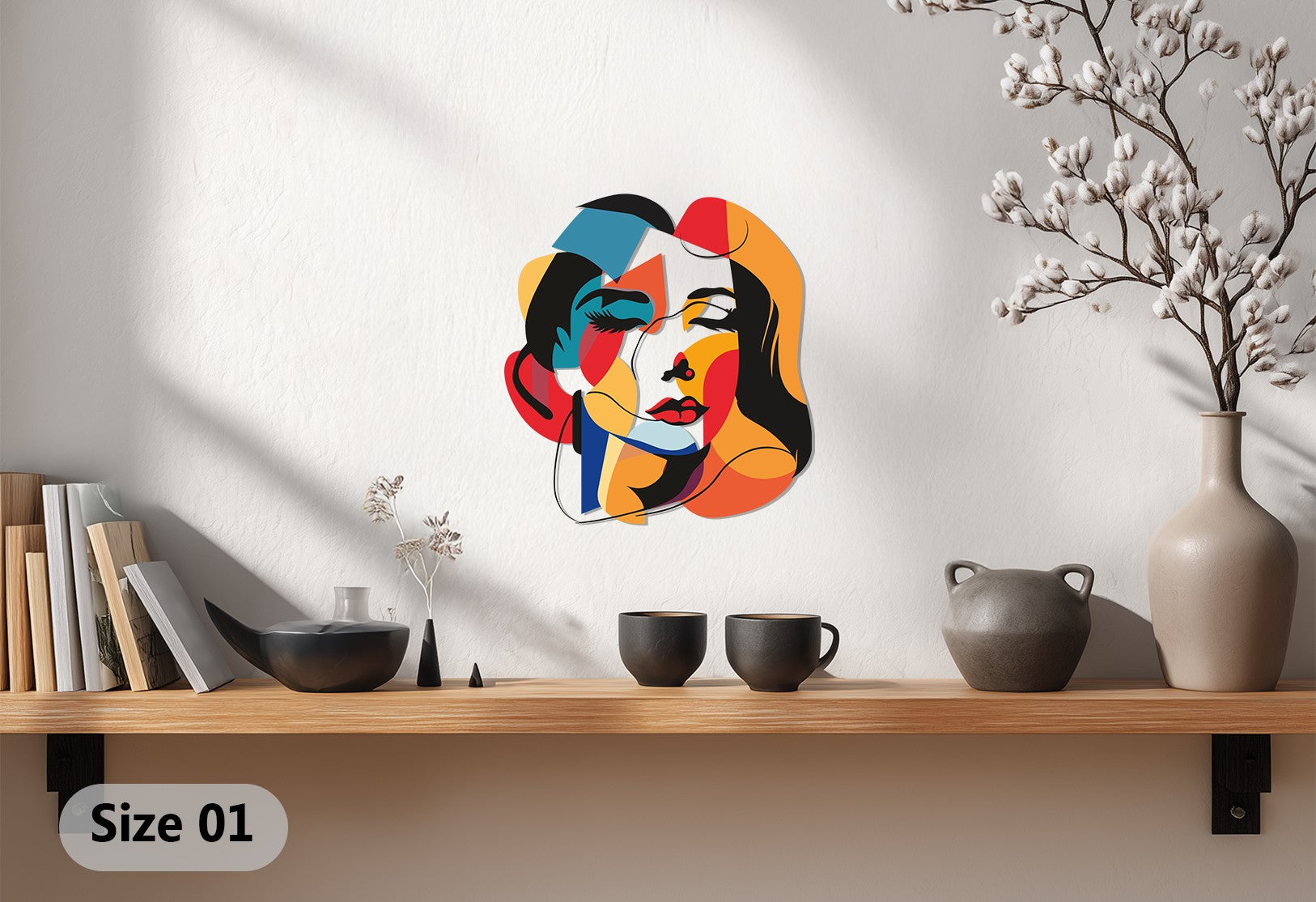 Made from premium UV-protected metal, this artwork guarantees lasting color brilliance and durability. The overlapping geometric shapes, smooth contours, and bold contrasts create visual depth, turning your wall into a gallery-worthy statement. Perfect for art lovers who appreciate modern abstract female portrait metal wall decor that combines strength, passion, and elegance.