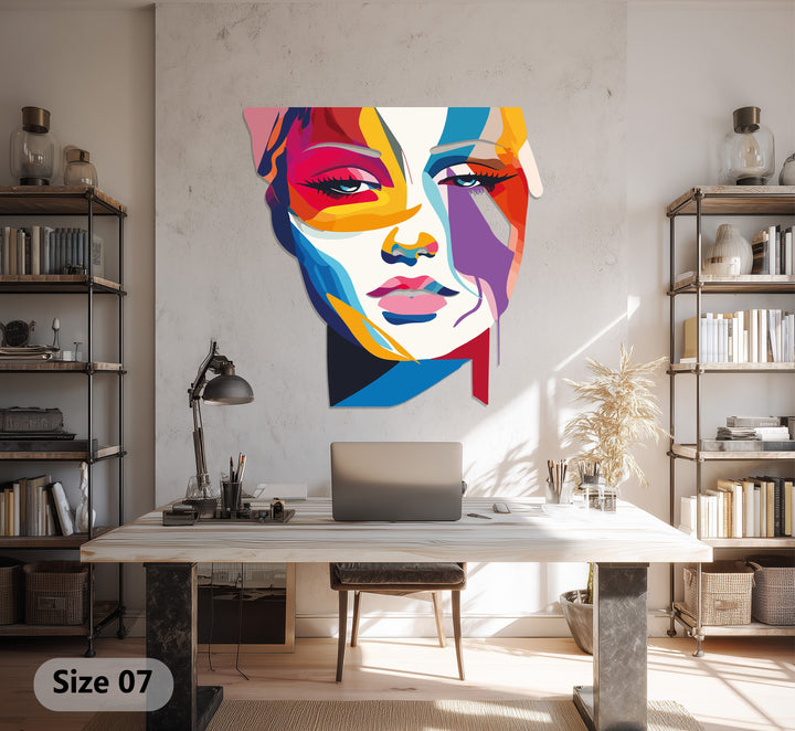 Colorful Abstract Woman Face Metal Wall Art – Modern Pop Art Home Decor