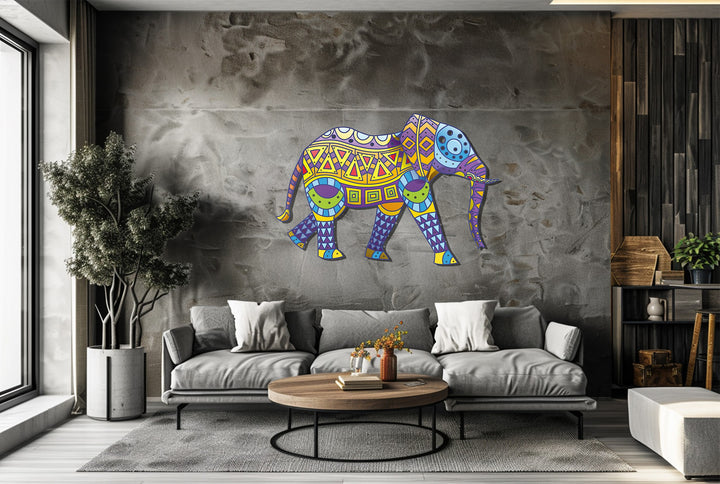 Colorful Tribal Elephant Metal Wall Art – Bohemian Animal-Inspired Home Decor