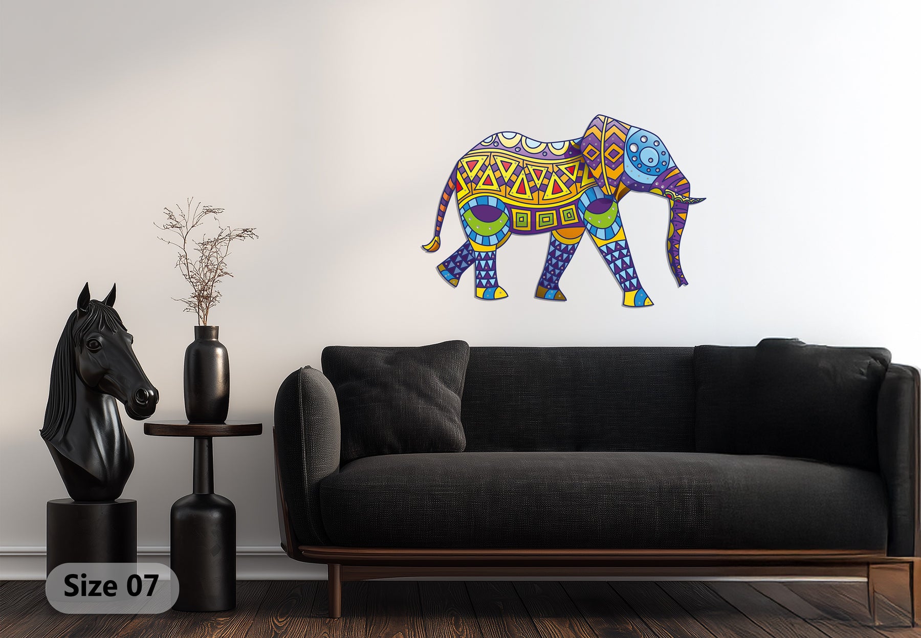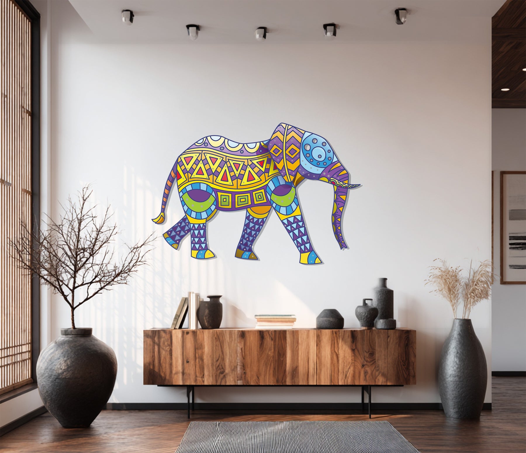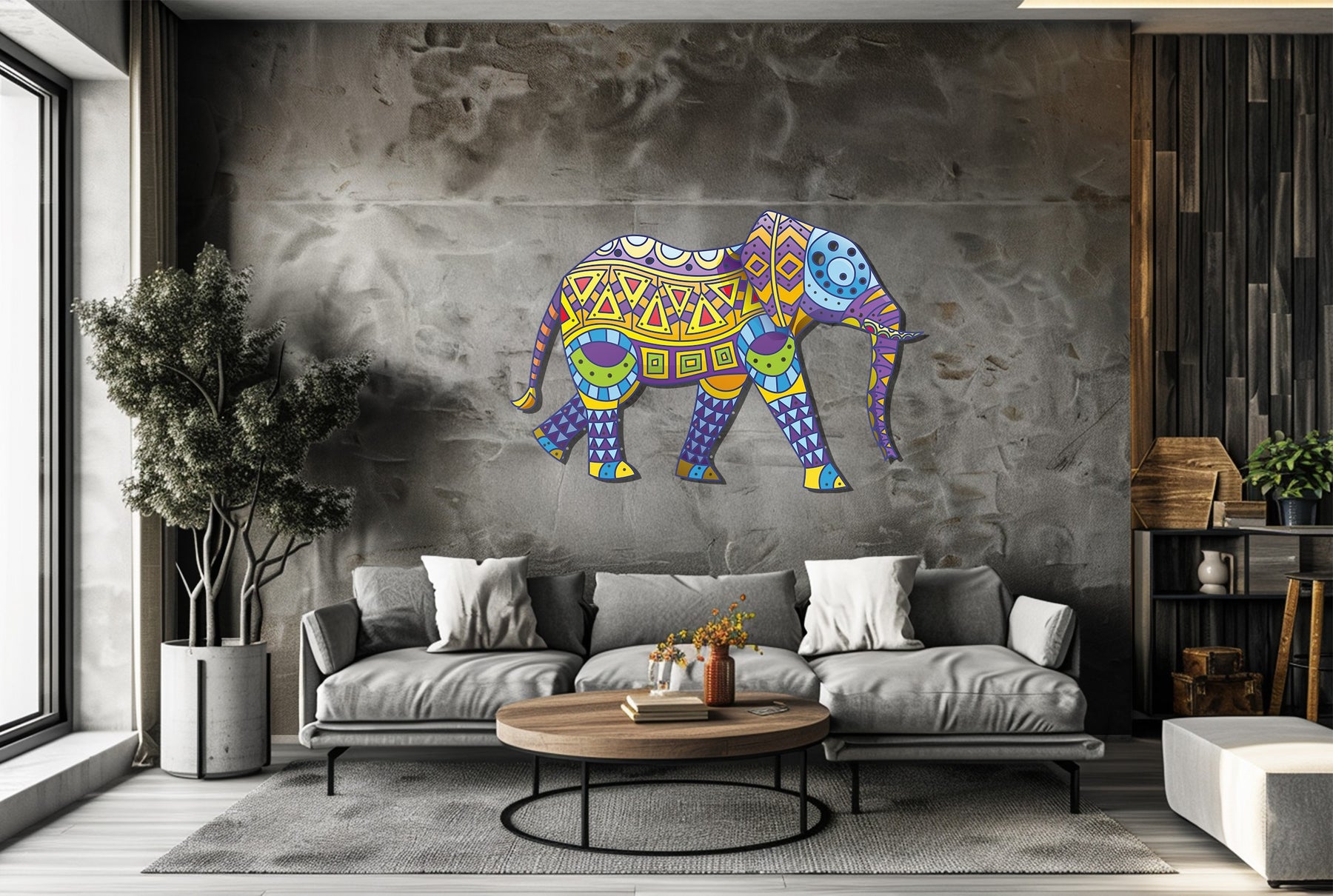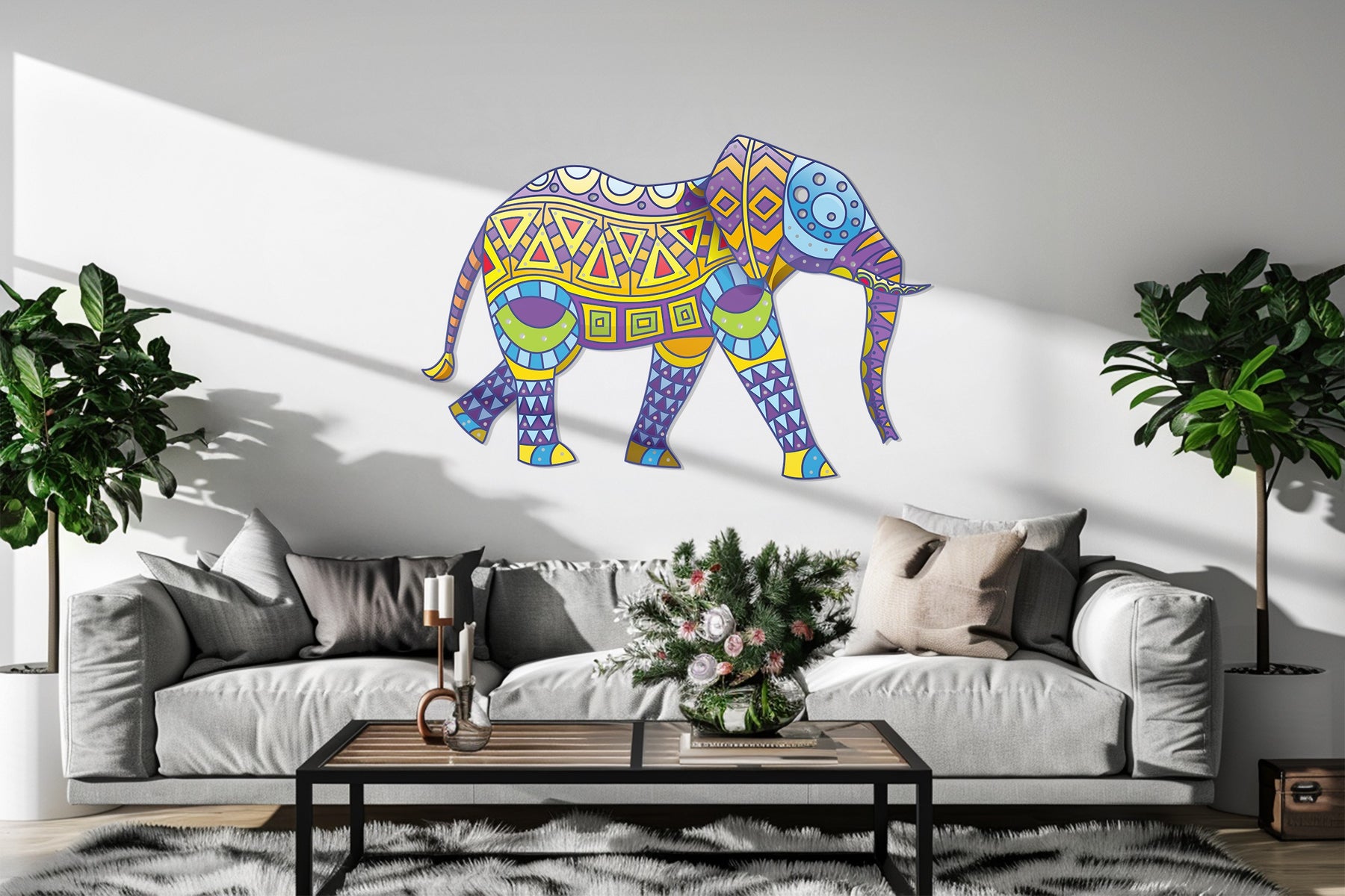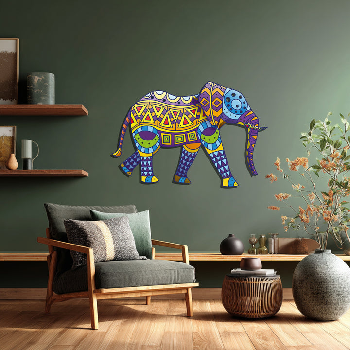 Add a burst of culture and color to your home with the Colorful Tribal Elephant Metal Wall Art, a captivating fusion of bohemian artistry and wildlife inspiration. Featuring a vibrant mix of yellow, purple, blue, and green geometric patterns, this piece embodies strength, wisdom, and creativity — perfect for living rooms, bedrooms, or eclectic boho-style interiors.