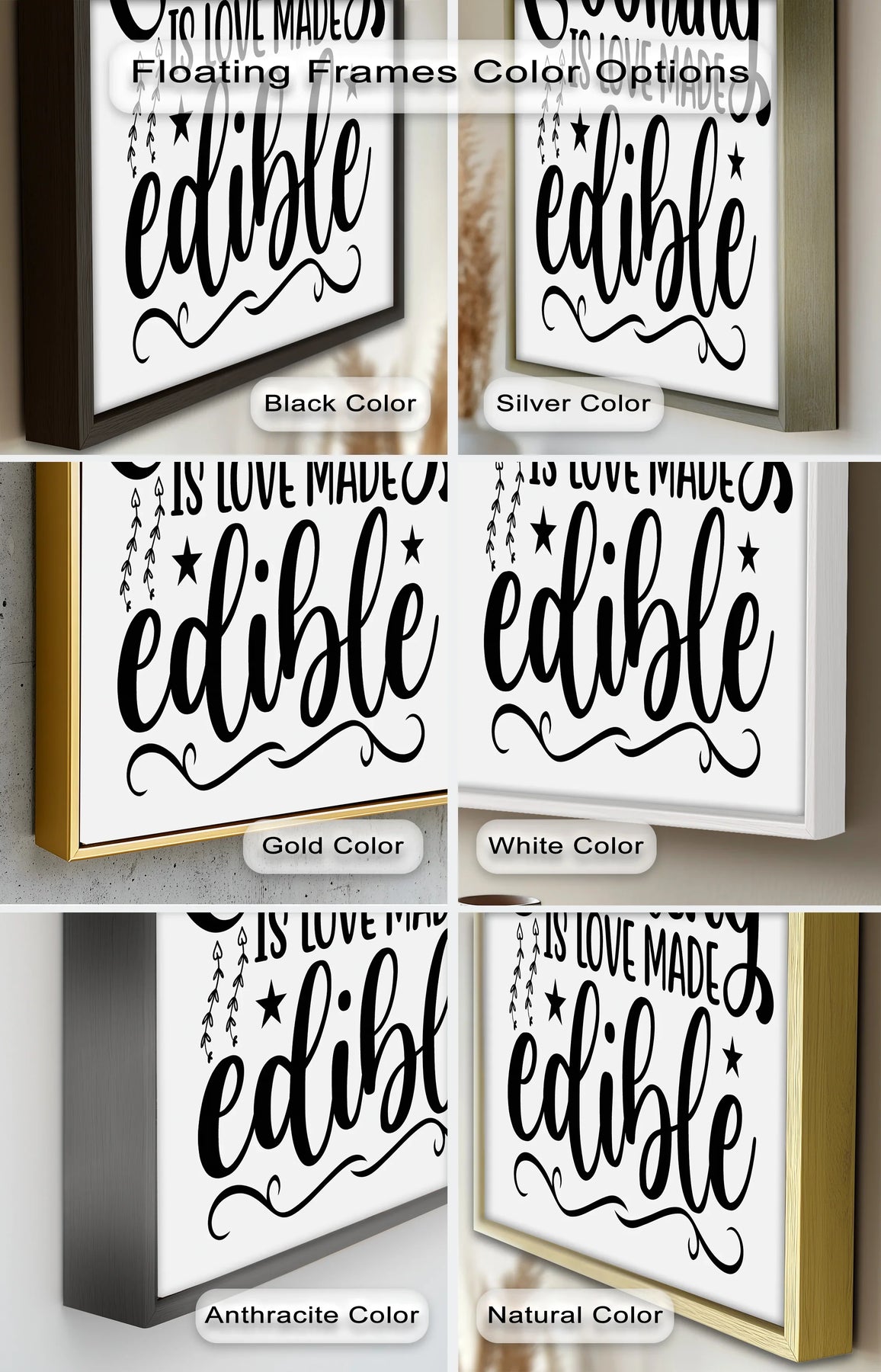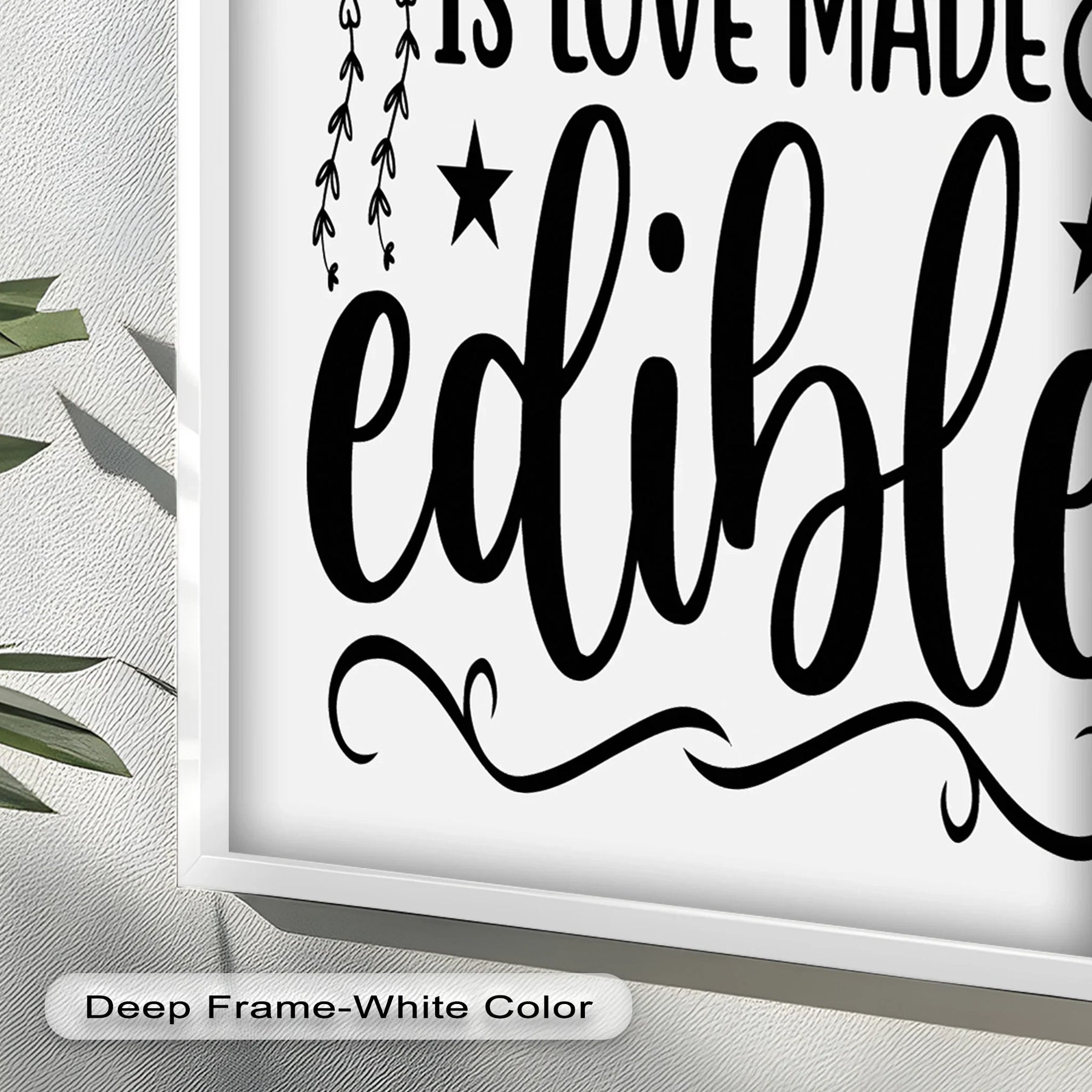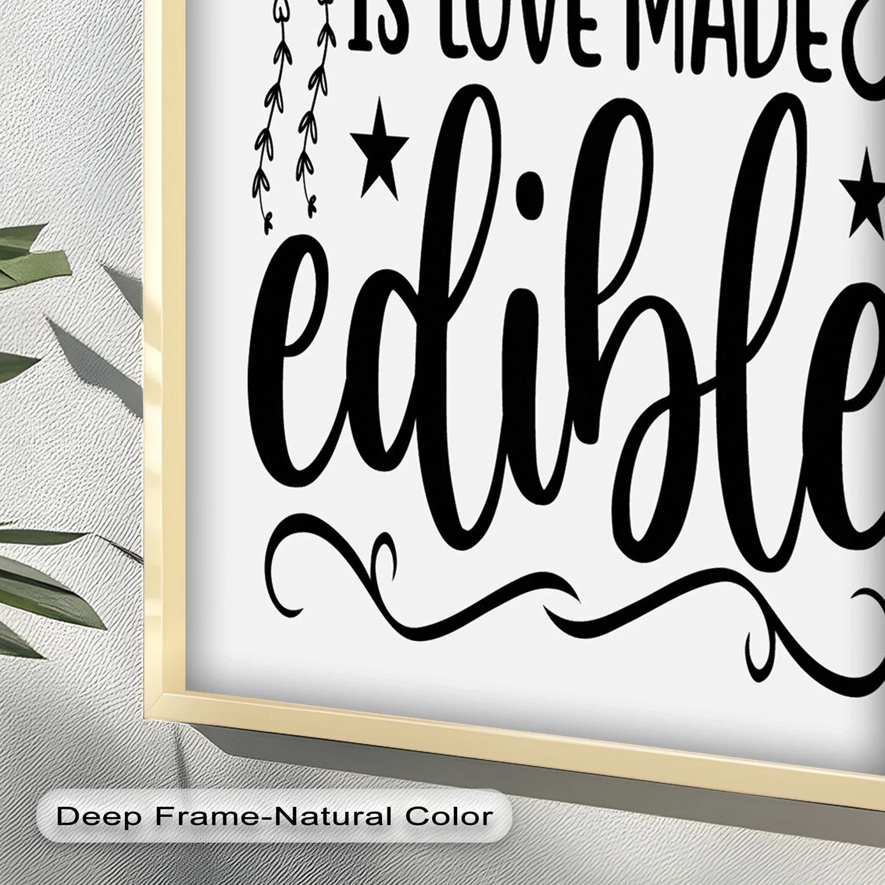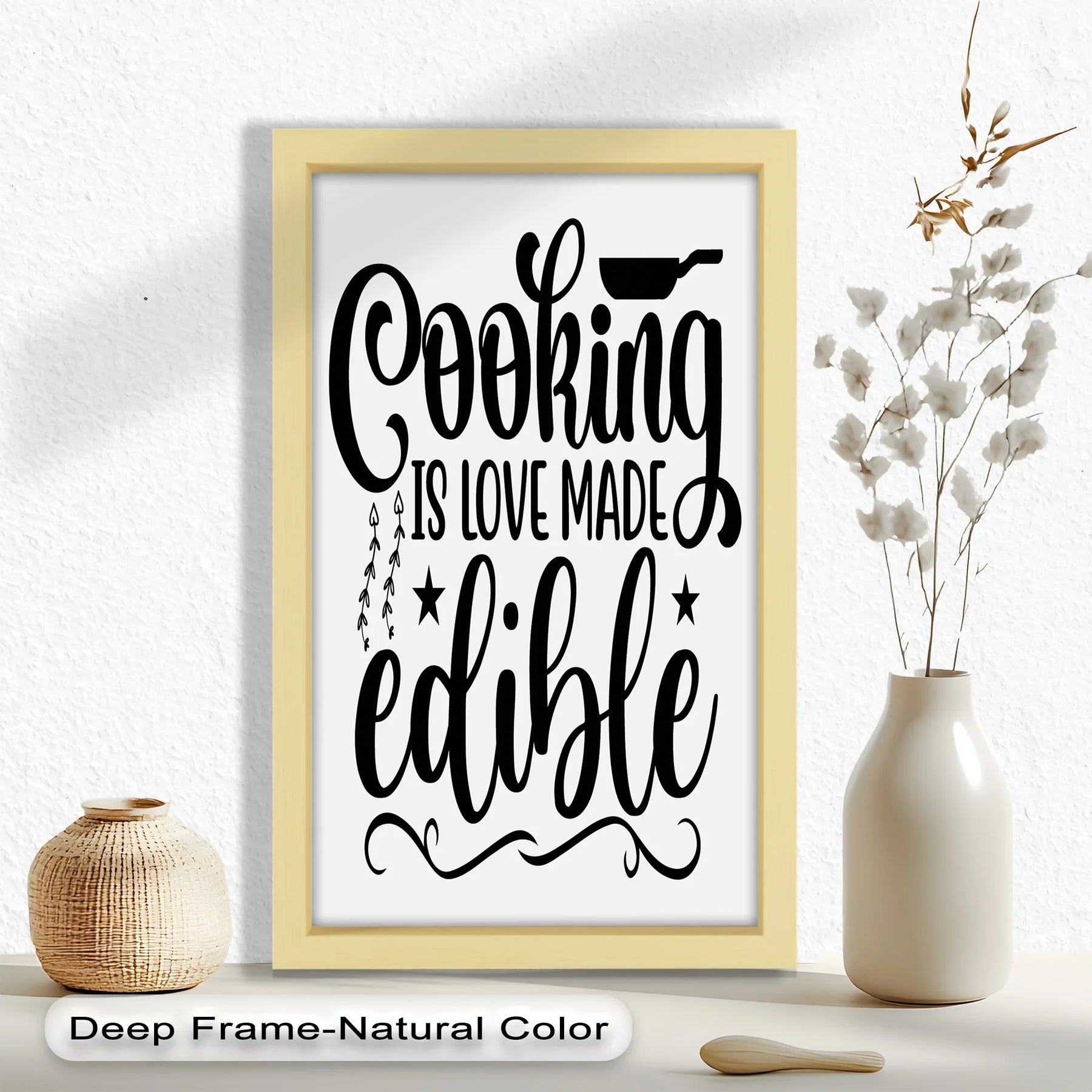 Add heartwarming charm to your kitchen with Cooking Is Love Made Edible, a black and white wall art piece that blends heartfelt sentiment with rustic kitchen style. Featuring playful script typography and illustrated kitchen accents, this artwork celebrates the joy of cooking and the love behind every homemade meal.