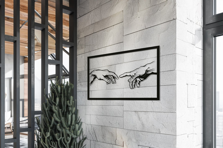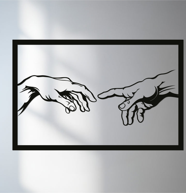 Elevate your walls with the Creation Hands Metal Wall Art, a minimalist yet powerful design inspired by the iconic Renaissance masterpiece. Featuring two hands reaching out in delicate balance, this artwork symbolizes life, connection, and divine inspiration.
