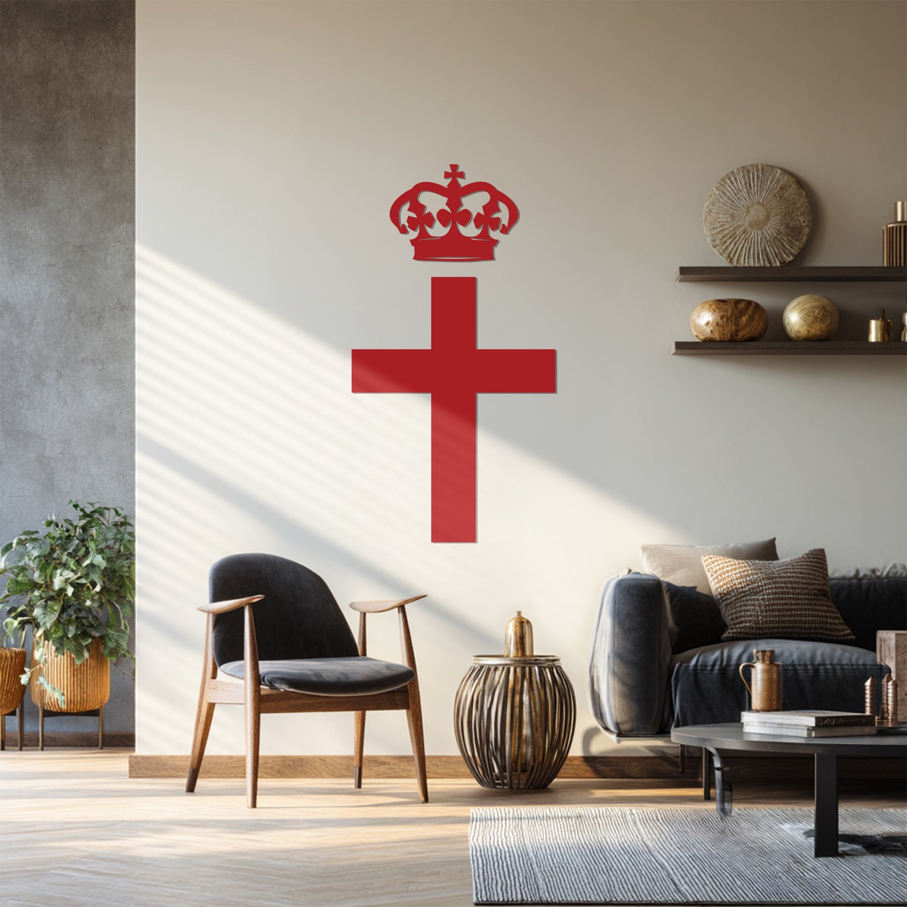 Add faith and strength to your space with this Cross with Crown Metal Wall Art. Featuring a bold cross topped with a regal crown, this black metal wall decor represents victory, protection, and devotion. Perfect for those seeking religious wall art, Christian metal wall decor, or a meaningful metal wall hanging for the living room, bedroom, or prayer space.