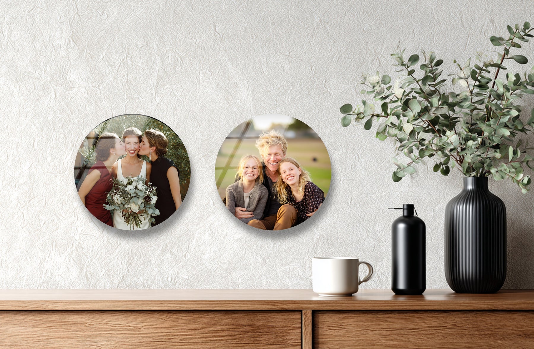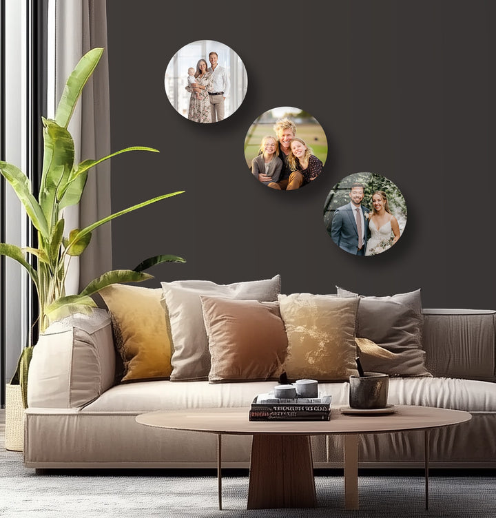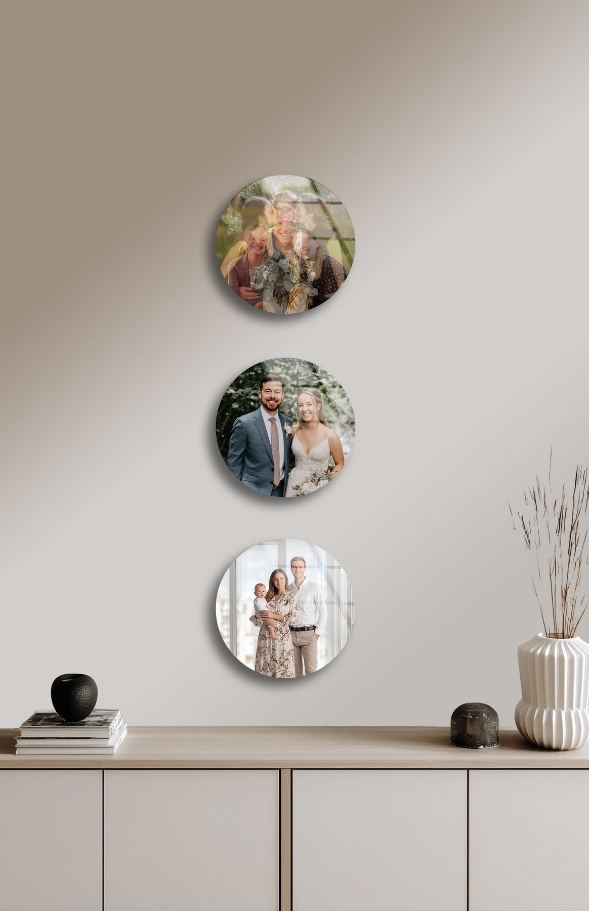 Cherish your most meaningful memories with the Custom Wedding & Family Round Glass Wall Art Set – Personalized Elegance. This exquisite set of glossy round glass panels beautifully displays your favorite wedding and family photos, turning them into timeless pieces of art. Each piece reflects warmth, love, and modern luxury through high-definition printing and a radiant glass finish.