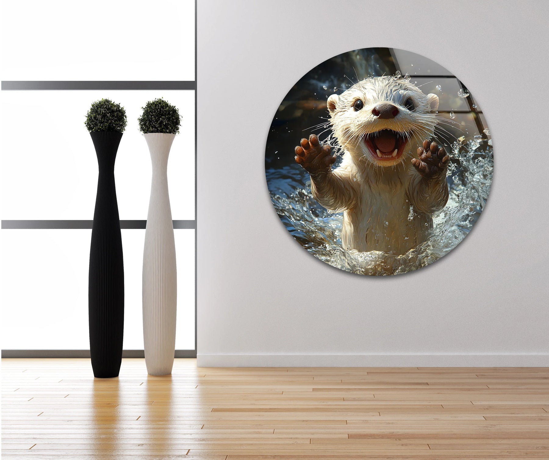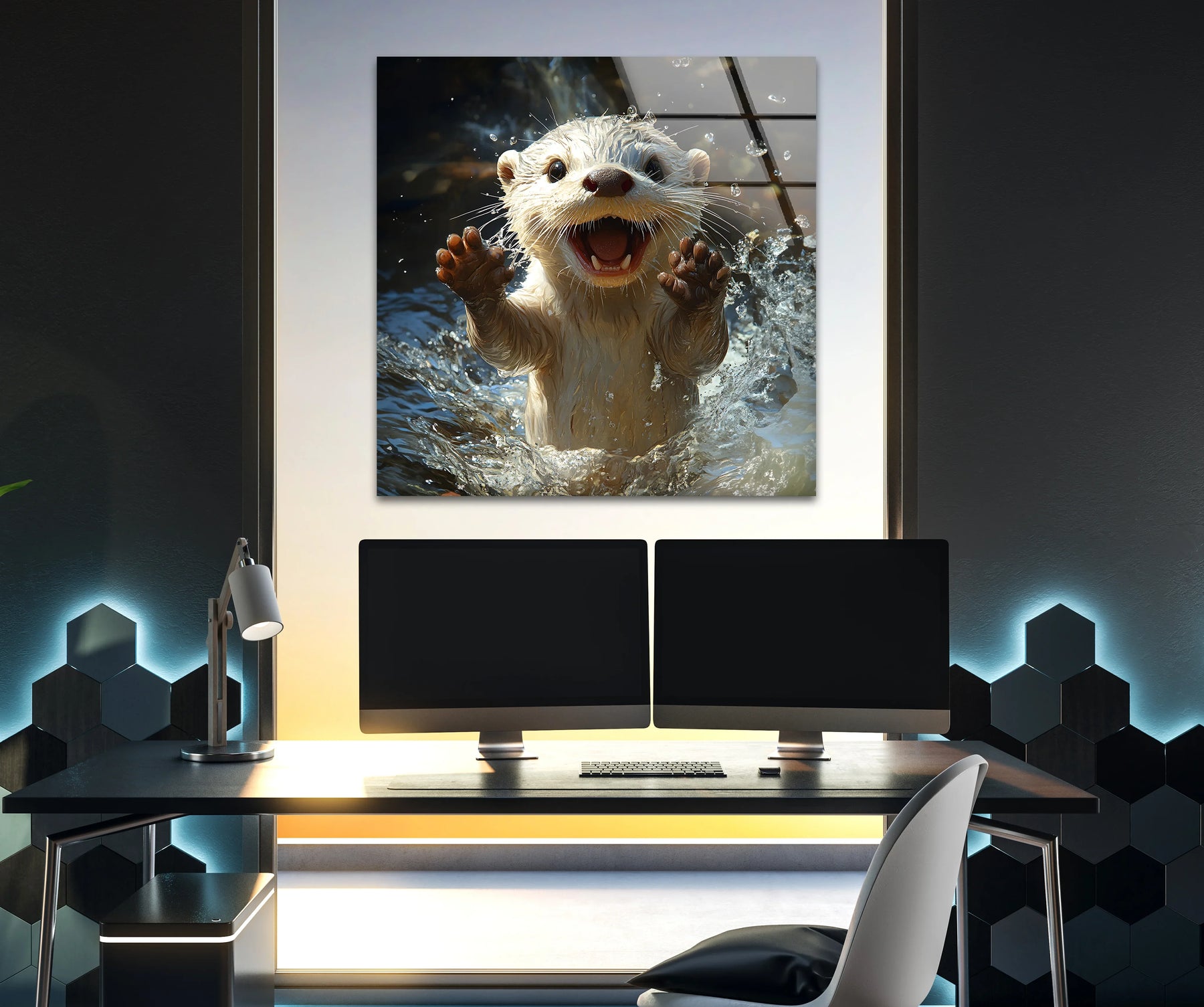 Add a touch of whimsy and joy to your space with the Cute Baby Otter Glass Wall Art. Capturing the playful expression and sparkling eyes of a baby otter animal prints splashing in the water, this piece radiates charm and happiness.