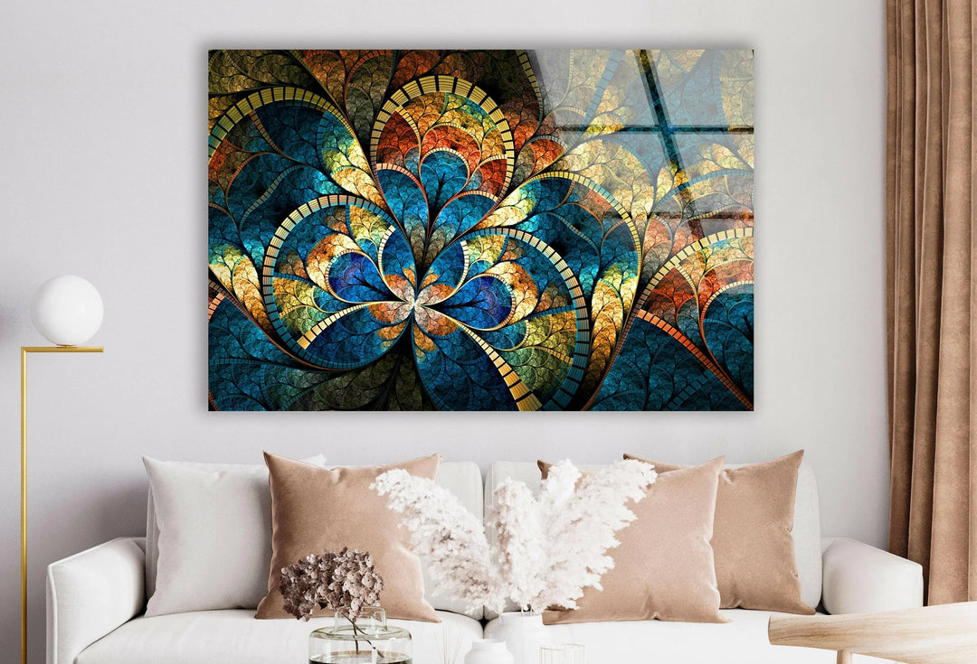 Bring a burst of complexity and color to your space with this Dark Abstract Flower wall art. This fractal-inspired design is printed on Glass Wall Art, creating an immersive visual experience with rich colors and intricate patterns. Perfect for adding a touch of elegance and depth to your decor.