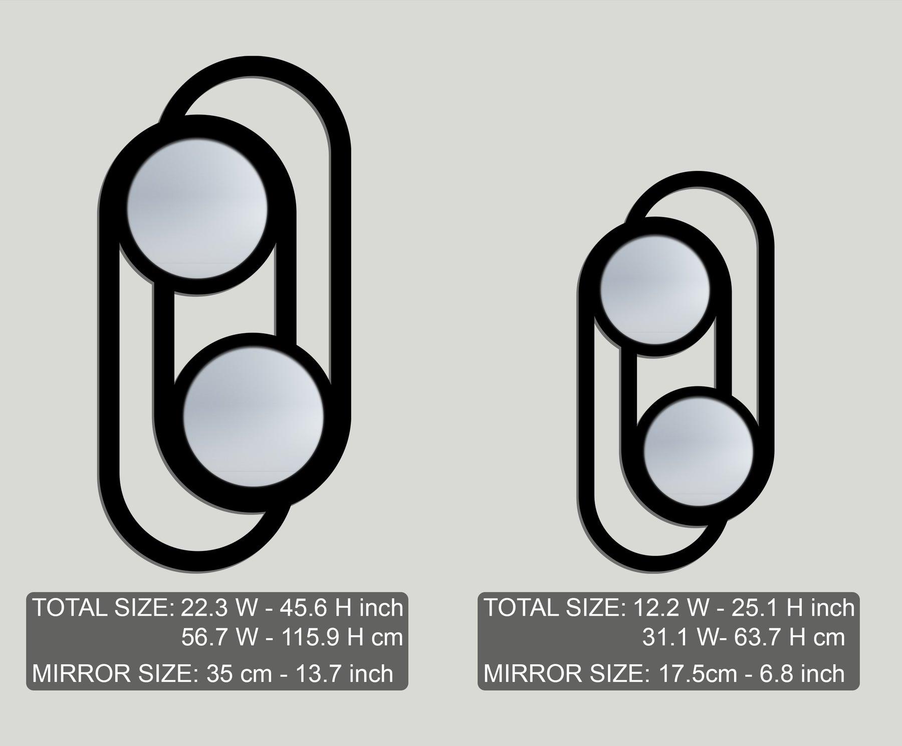 Bring sleek geometry and contemporary elegance into your space with the Double Circle Link Metal Wall Mirror – Modern Minimalist Design. Featuring two circular mirrors connected within a flowing, elongated frame, this piece creates a clean and balanced composition inspired by modern architectural forms. The bold black metal structure enhances contrast while maintaining a refined, minimalist aesthetic.