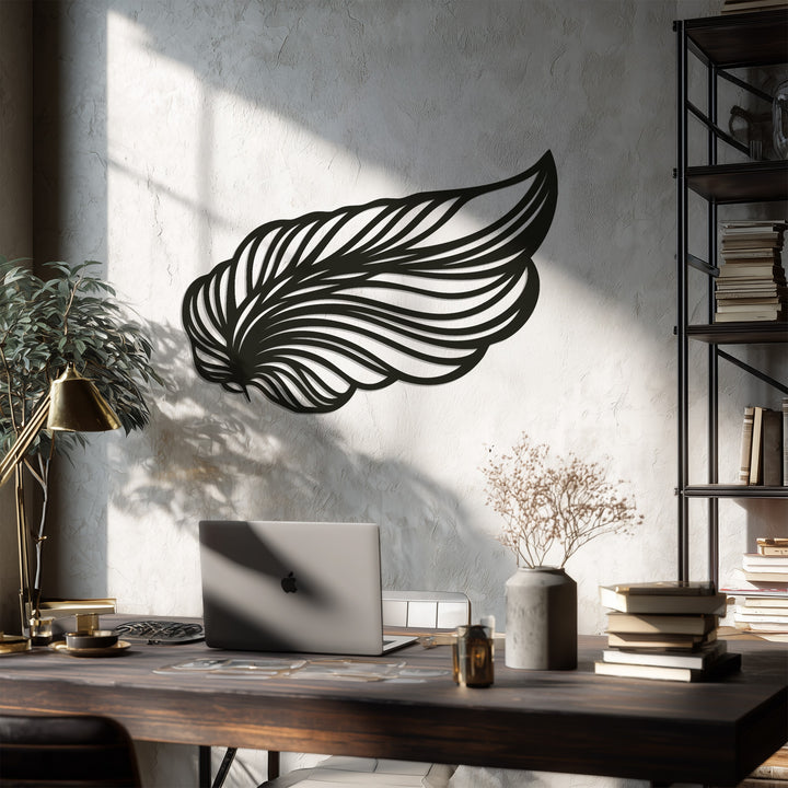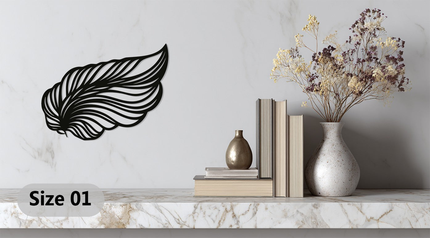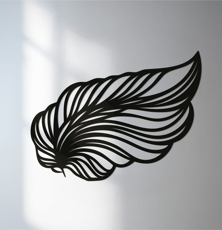 Graceful, symbolic, and timeless – the Elegant Wing Feather Metal Wall Art brings an aura of lightness and protection into your space. Its flowing feather-like lines symbolize freedom, hope, and spiritual strength, making it a meaningful addition to living rooms, bedrooms, or entryways. Whether you see it as an angel wing, a symbolic feather, or a modern abstract design, this piece will inspire serenity and style in any interior.