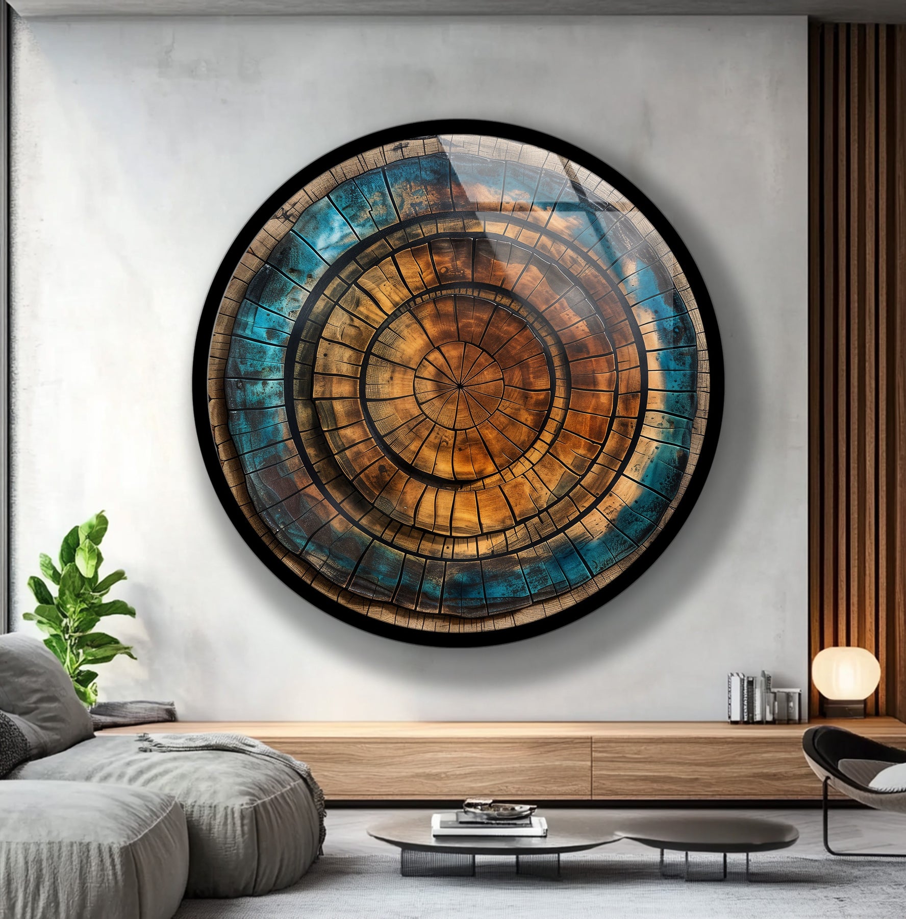 Capture the timeless beauty of nature with the Eternal Rings – Rustic Wood Texture Round Glass Wall Art. This mesmerizing piece blends earthy browns with oceanic turquoise hues, symbolizing the harmony between land and sea. The concentric wood-like pattern resembles the rings of a mighty ancient tree — a visual metaphor for strength, growth, and the passage of time.