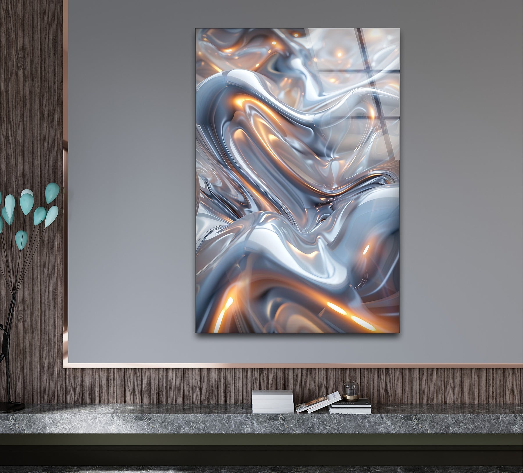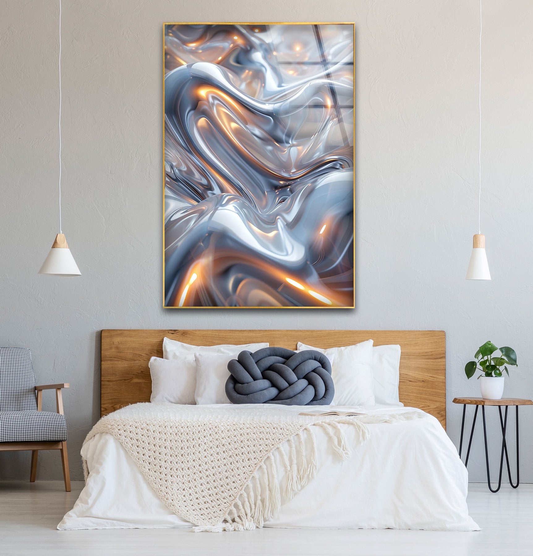 Printed on premium high-gloss glass, every ripple and reflection appears ultra-sharp and luminous. Perfect for living rooms, bedrooms, offices, or luxury commercial interiors, this abstract glass wall art adds depth, elegance, and a futuristic aesthetic to any modern décor theme.