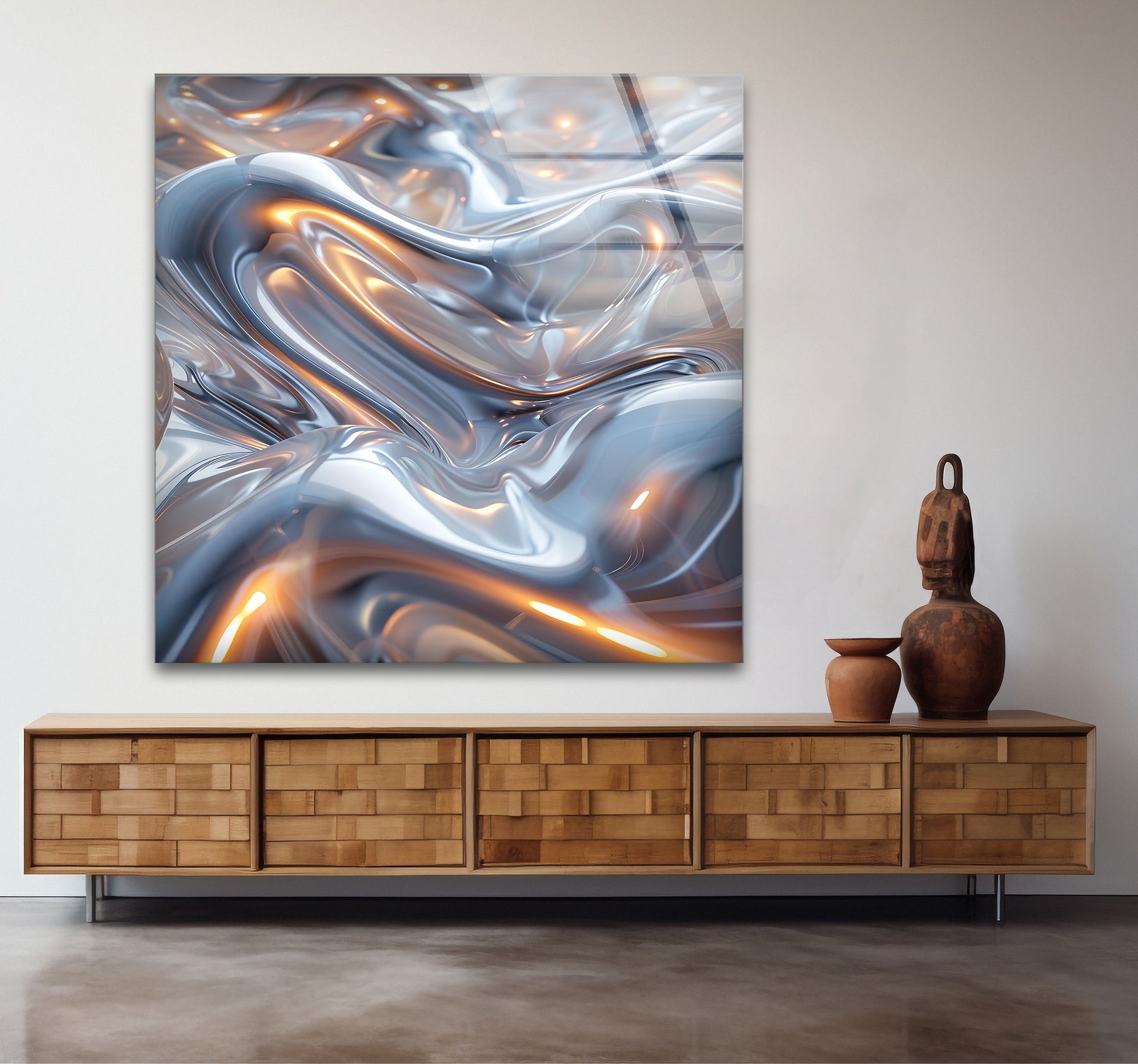 Transform your space with the captivating brilliance of Ethereal Silver Glow – Abstract Fluid Metal Design Glass Wall Art. Featuring flowing metallic silver textures illuminated by warm amber highlights, this artwork creates the illusion of liquid metal in motion—modern, luxurious, and irresistibly eye-catching.