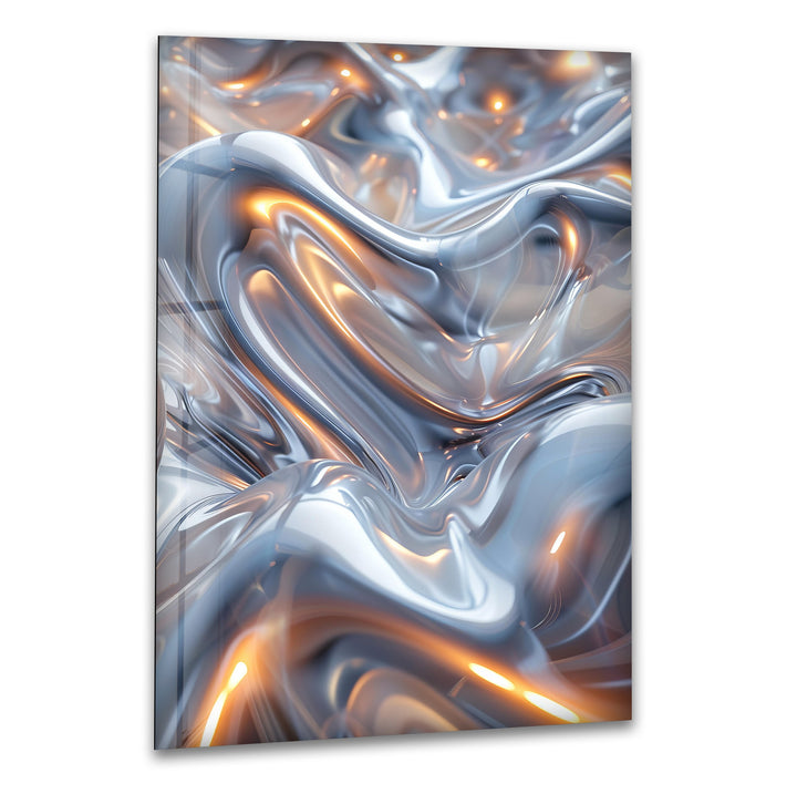 Ethereal Silver Glow – Abstract Fluid Metal Design Glass Wall Art