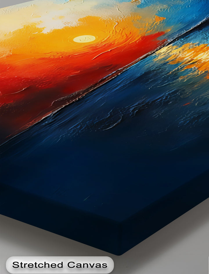 Fiery Horizon – Abstract Sunset Seascape Canvas Wall Art | Framed Art