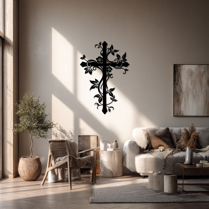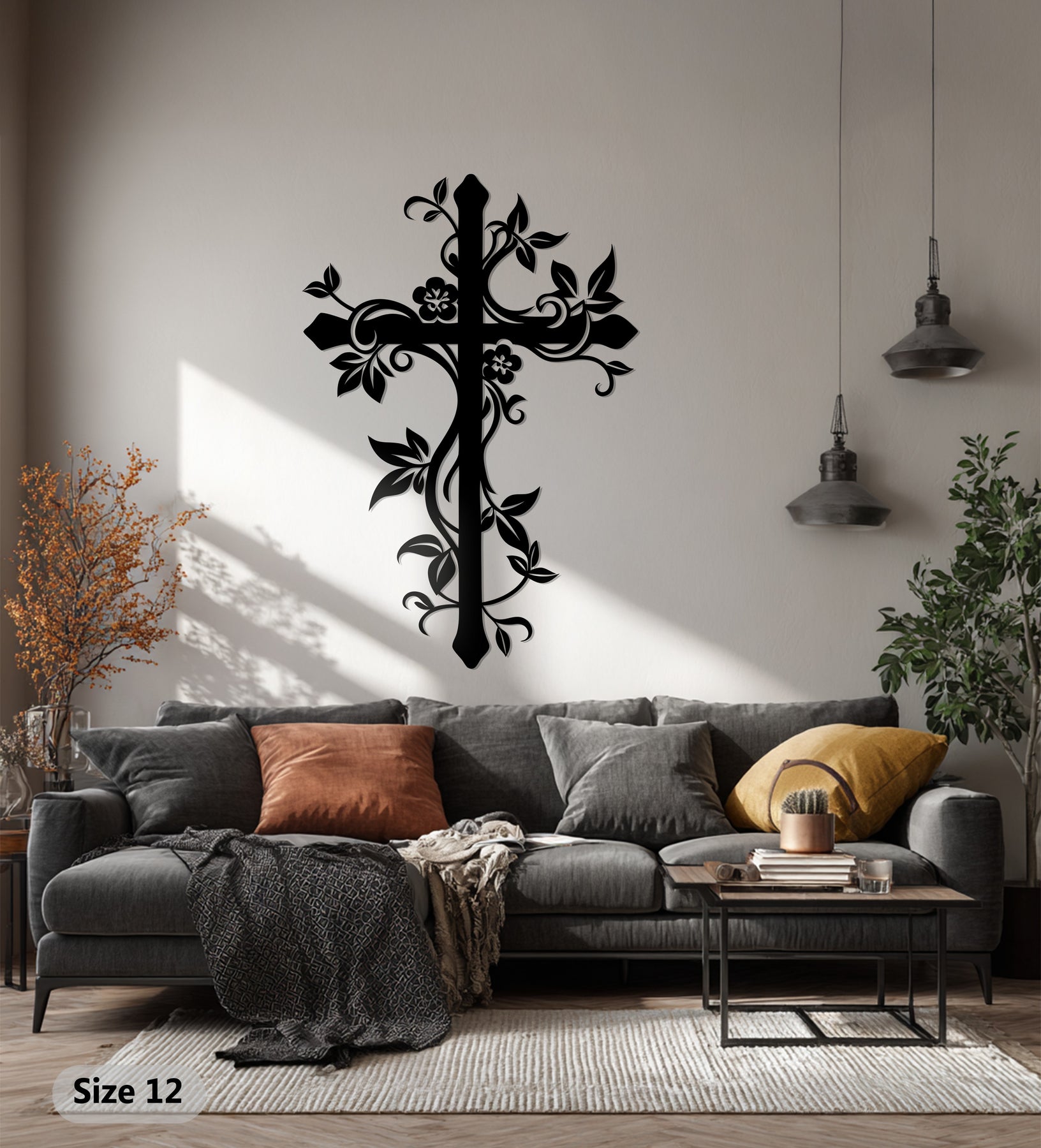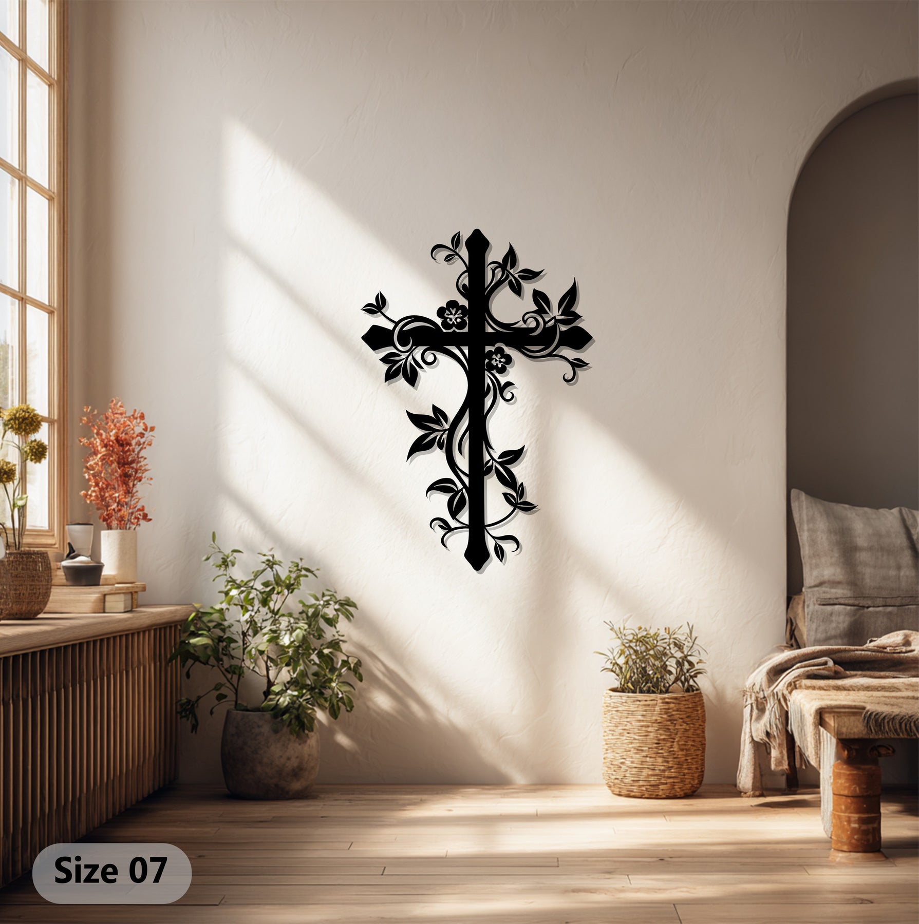 Expertly laser-cut from high-quality metal, this design features intricate floral details that gracefully flow along the cross, casting elegant shadows that add depth and sophistication to any wall. Perfect for living rooms, prayer rooms, hallways, or entryways, it’s a timeless expression of spirituality and serenity.