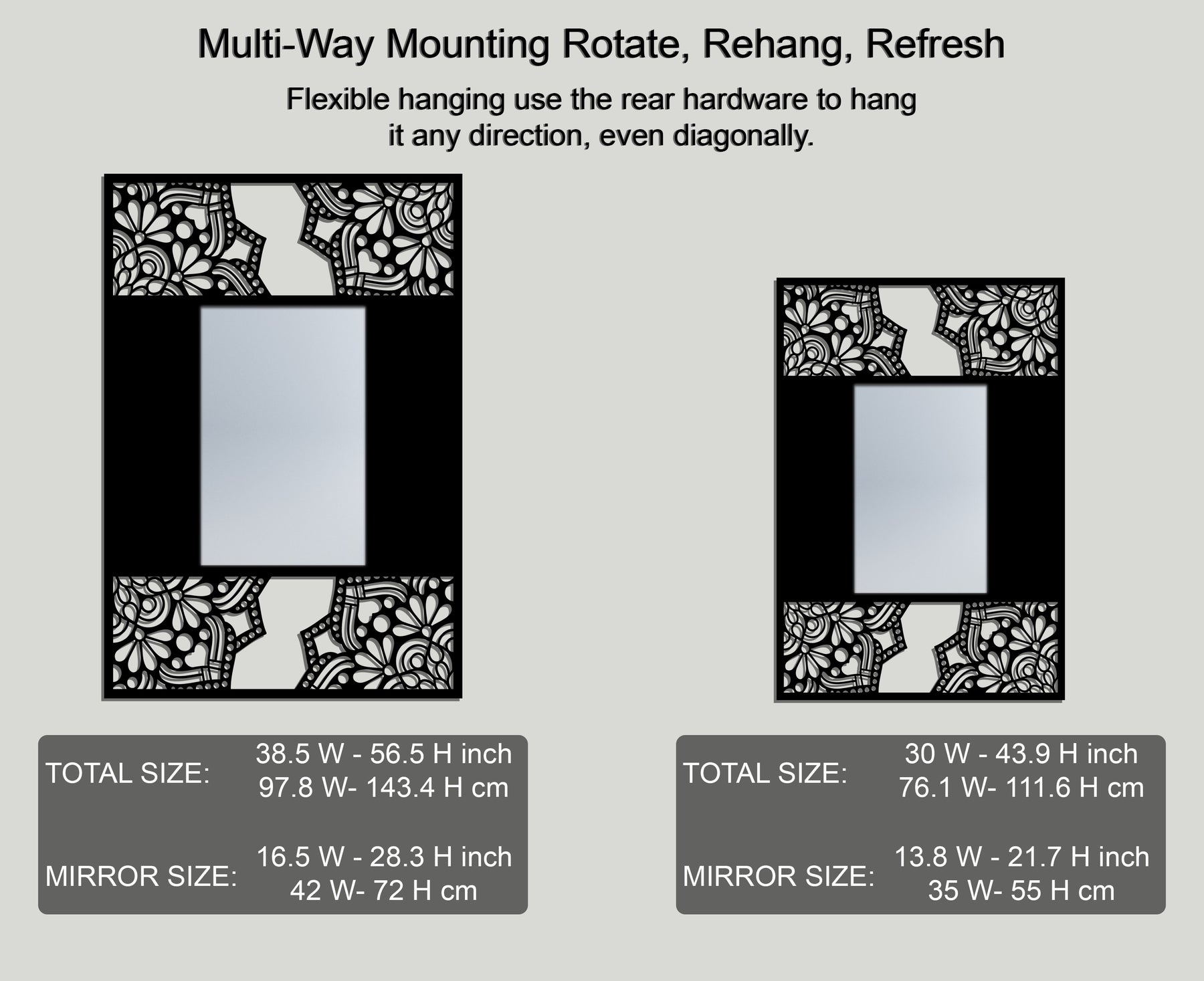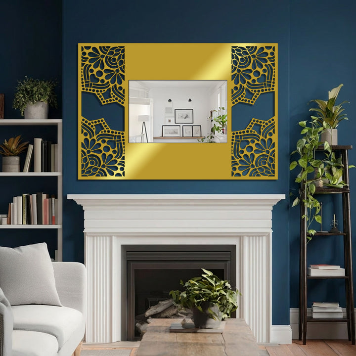 Floral Mandala Frame Metal Floor Mirror – Decorative Pattern Design