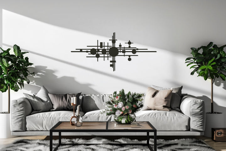 The Geometric Balance Abstract Metal Wall Art is a striking composition of circles and lines, creating a dynamic rhythm reminiscent of modern architecture and industrial design. Its balanced yet bold structure makes it perfect for contemporary interiors, offices, and creative studios. This piece not only enhances walls with artistic depth but also symbolizes harmony, structure, and modern minimalism.