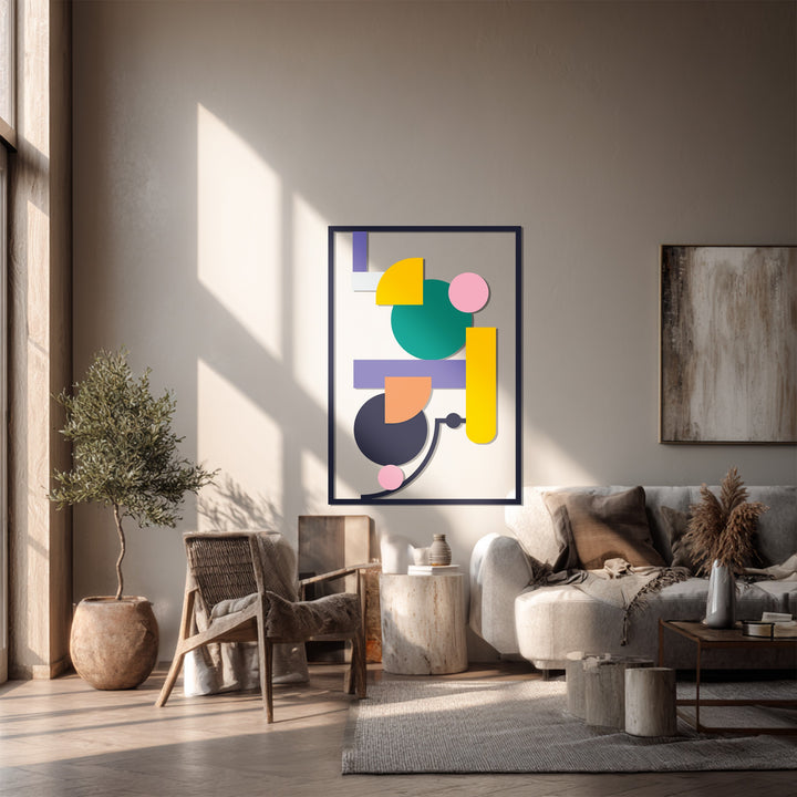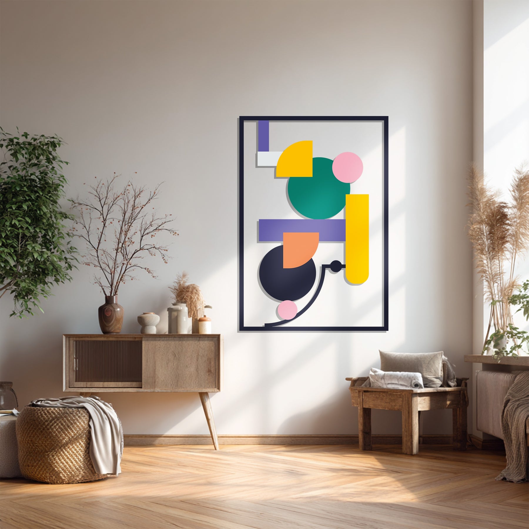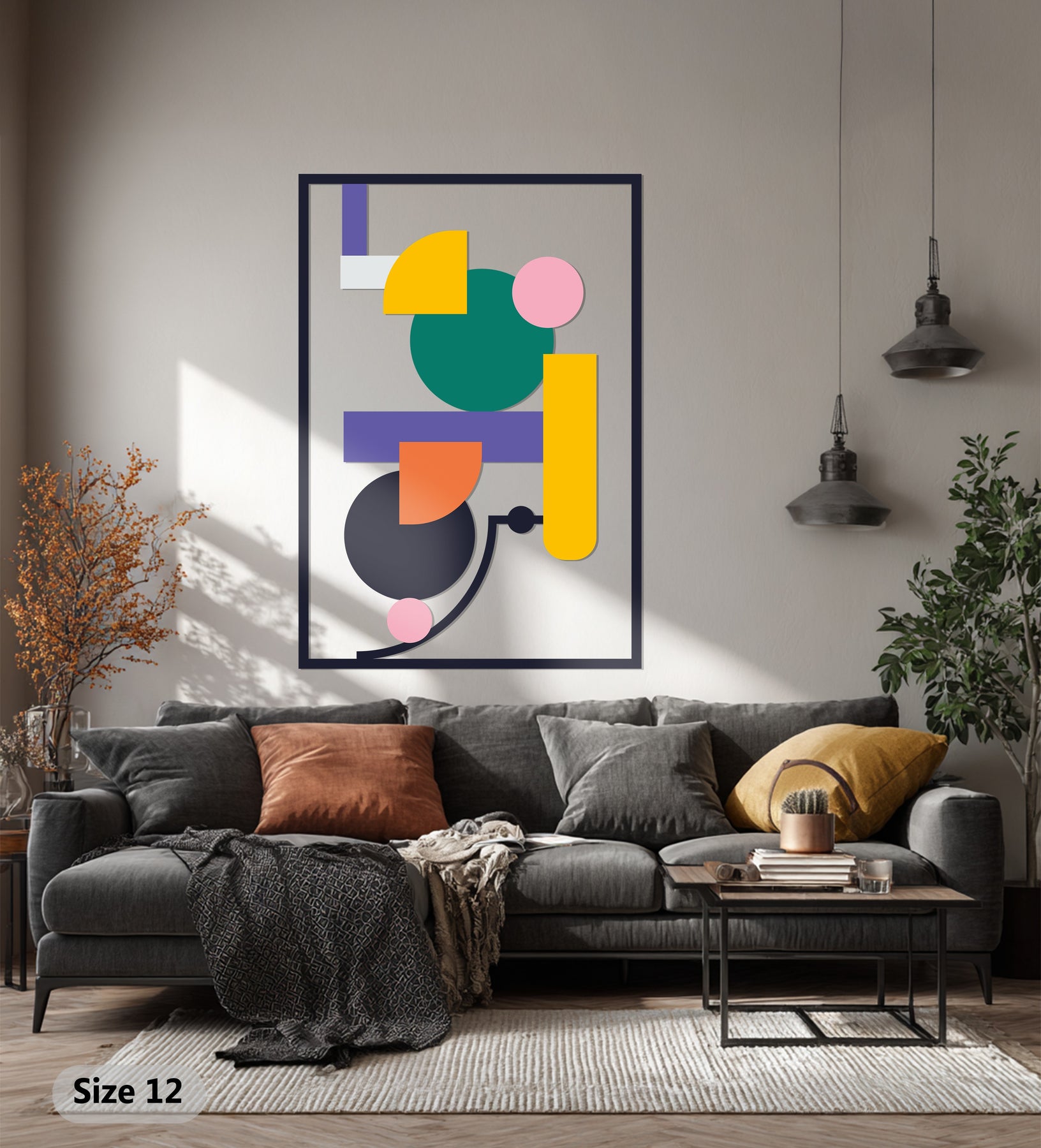 Add contemporary elegance to your interior with the Geometric Balance Metal Wall Art, a bold interplay of form, symmetry, and vibrant color. Featuring overlapping circles, rectangles, and arcs in striking hues of yellow, green, pink, orange, and black, this design captures the essence of modern abstract art.