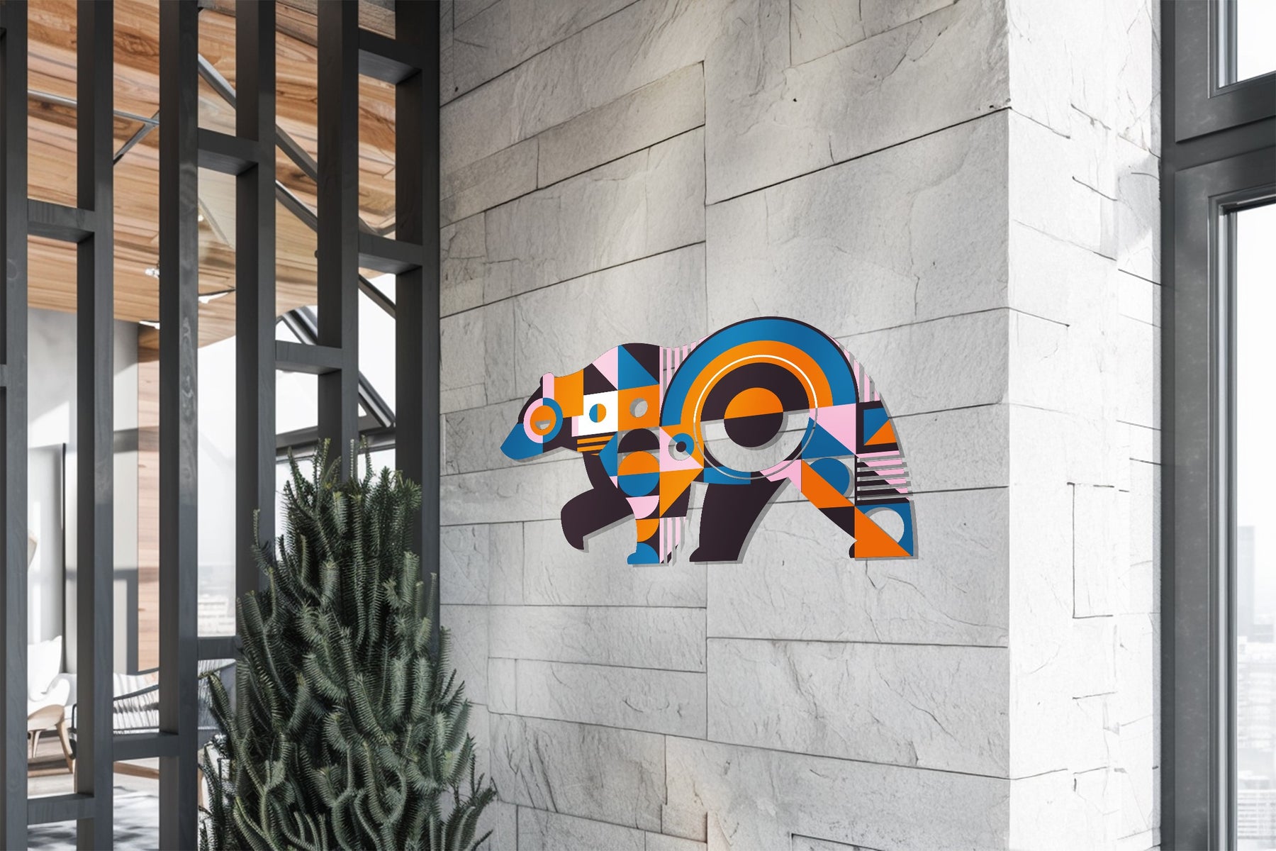 Geometric Bear Metal Wall Art – Colorful Modern Animal Home Decor