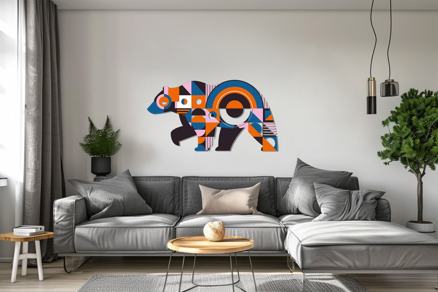 Bring bold character and modern artistry to your home with the Geometric Bear Metal Wall Art, a stunning blend of abstract geometry and wildlife inspiration. Designed with a striking palette of orange, blue, pink, and deep brown tones, this artwork captures strength, balance, and creativity — perfect for living rooms, offices, or contemporary nature-themed interiors.