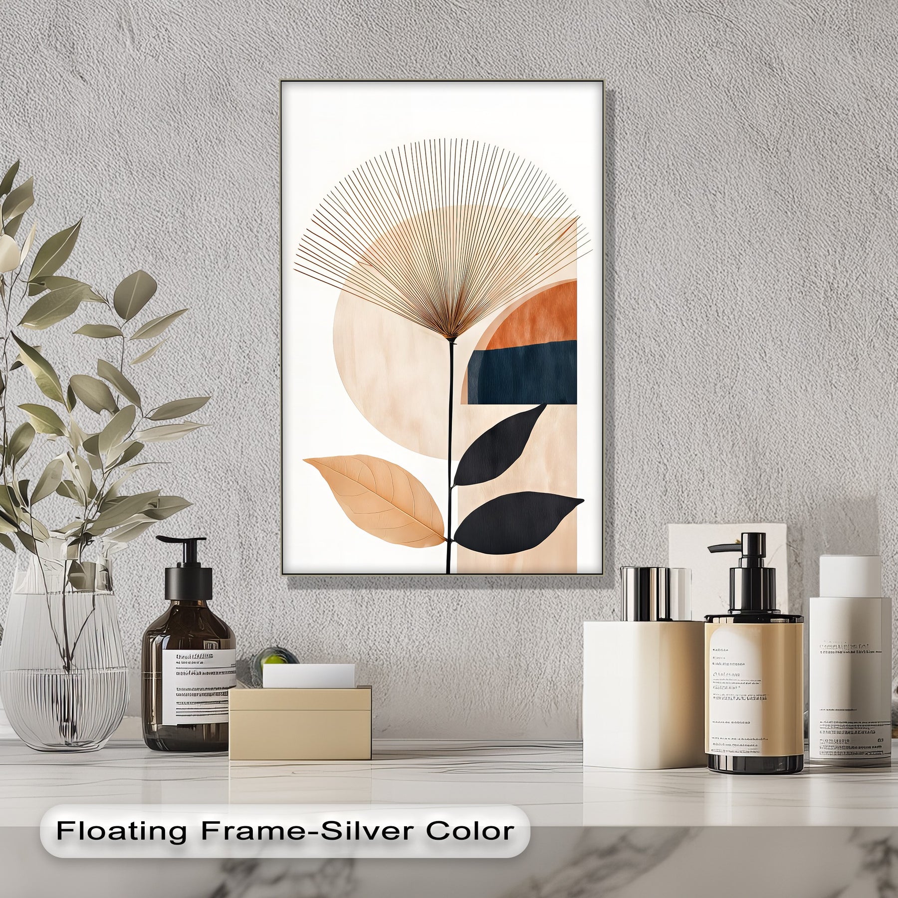 Perfect as modern living room wall décor, bedroom artwork, or office wall art, this piece combines minimalism with sophistication. The organic leaves contrast beautifully with the structured lines, making it a versatile statement for both contemporary and bohemian interiors.