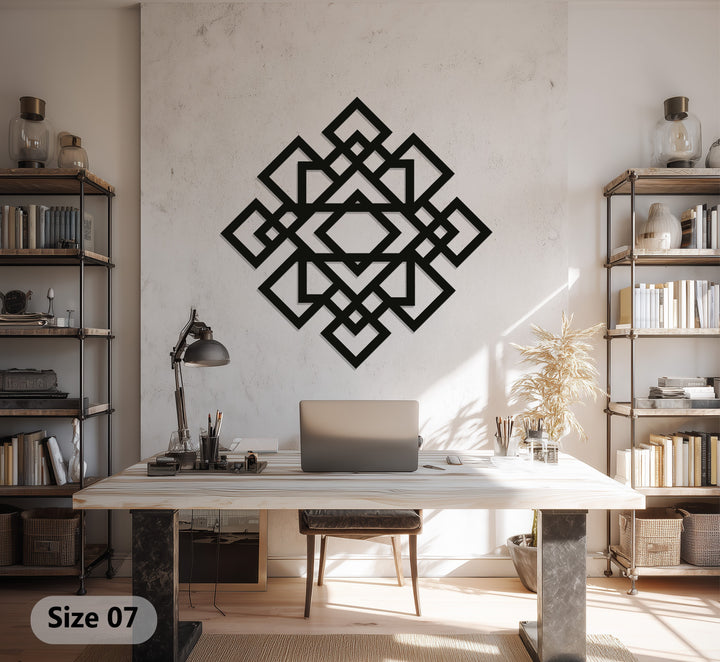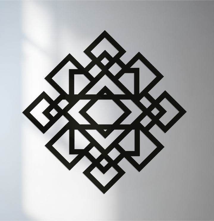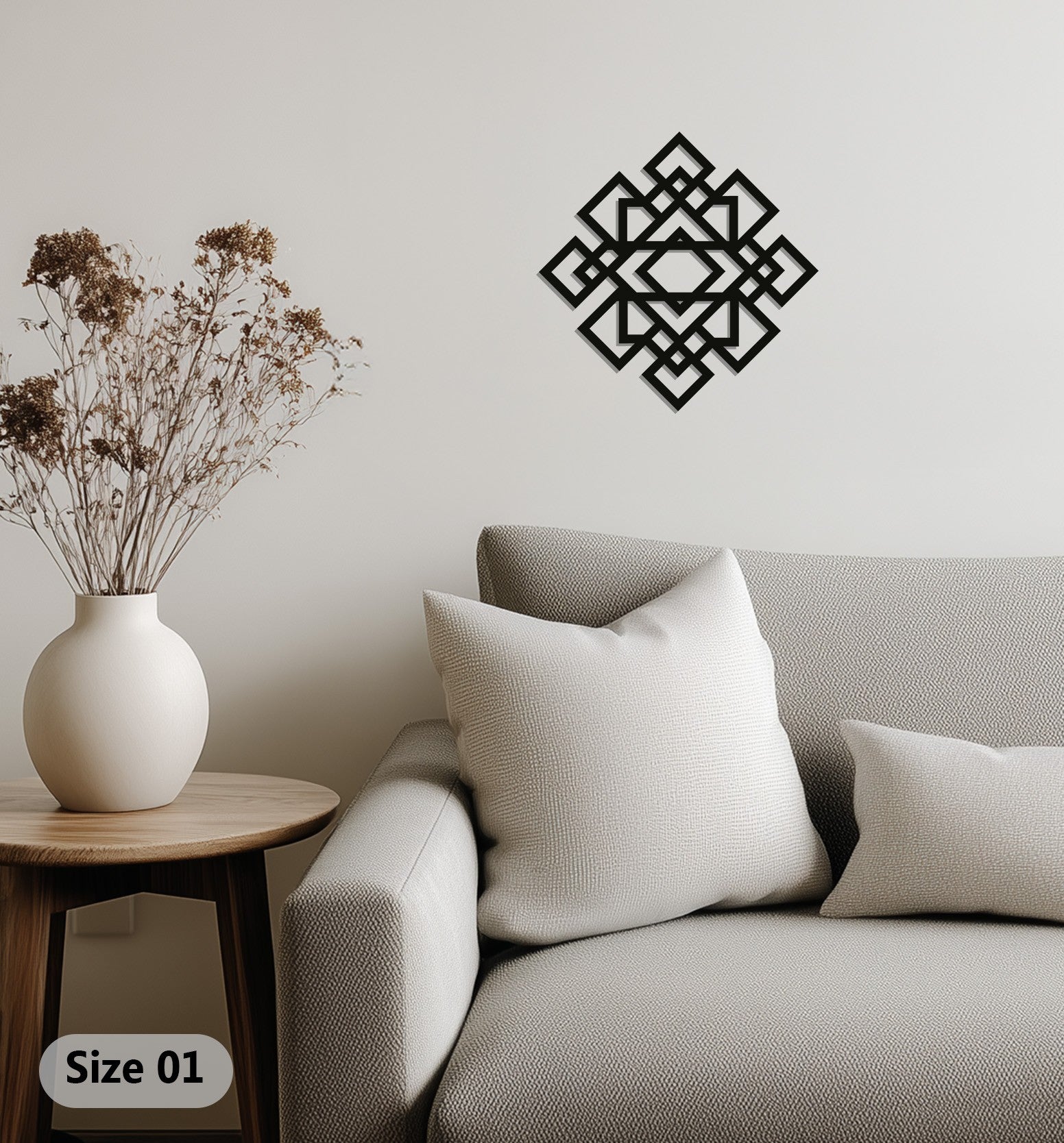 Elevate your home décor with the striking Geometric Diamond Pattern Metal Wall Art. Featuring an intricate arrangement of overlapping diamonds and squares, this design brings symmetry, depth, and sophistication to any room.