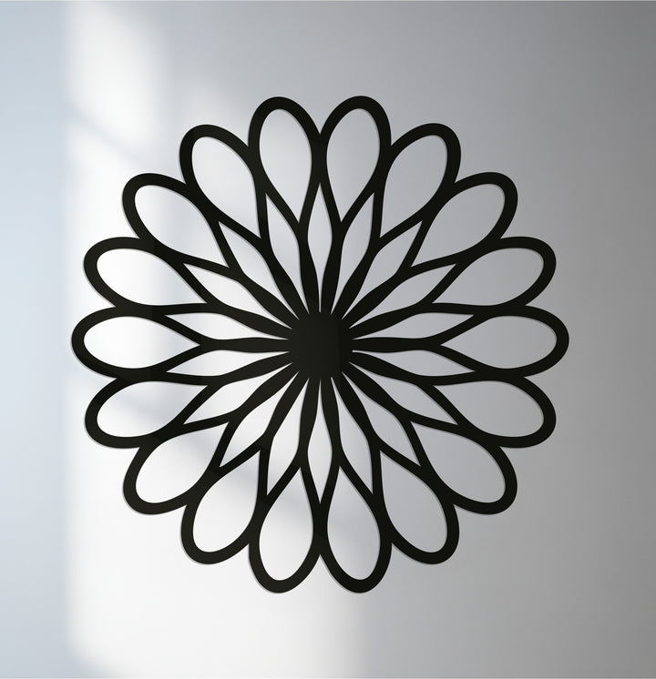 The repeating petal-like shapes symbolize growth, renewal, and the natural order of life. Whether placed in the living room, hallway, or bedroom, this artwork adds both sophistication and serenity. Its sleek black finish allows it to blend seamlessly with any décor style—from contemporary to boho chic.