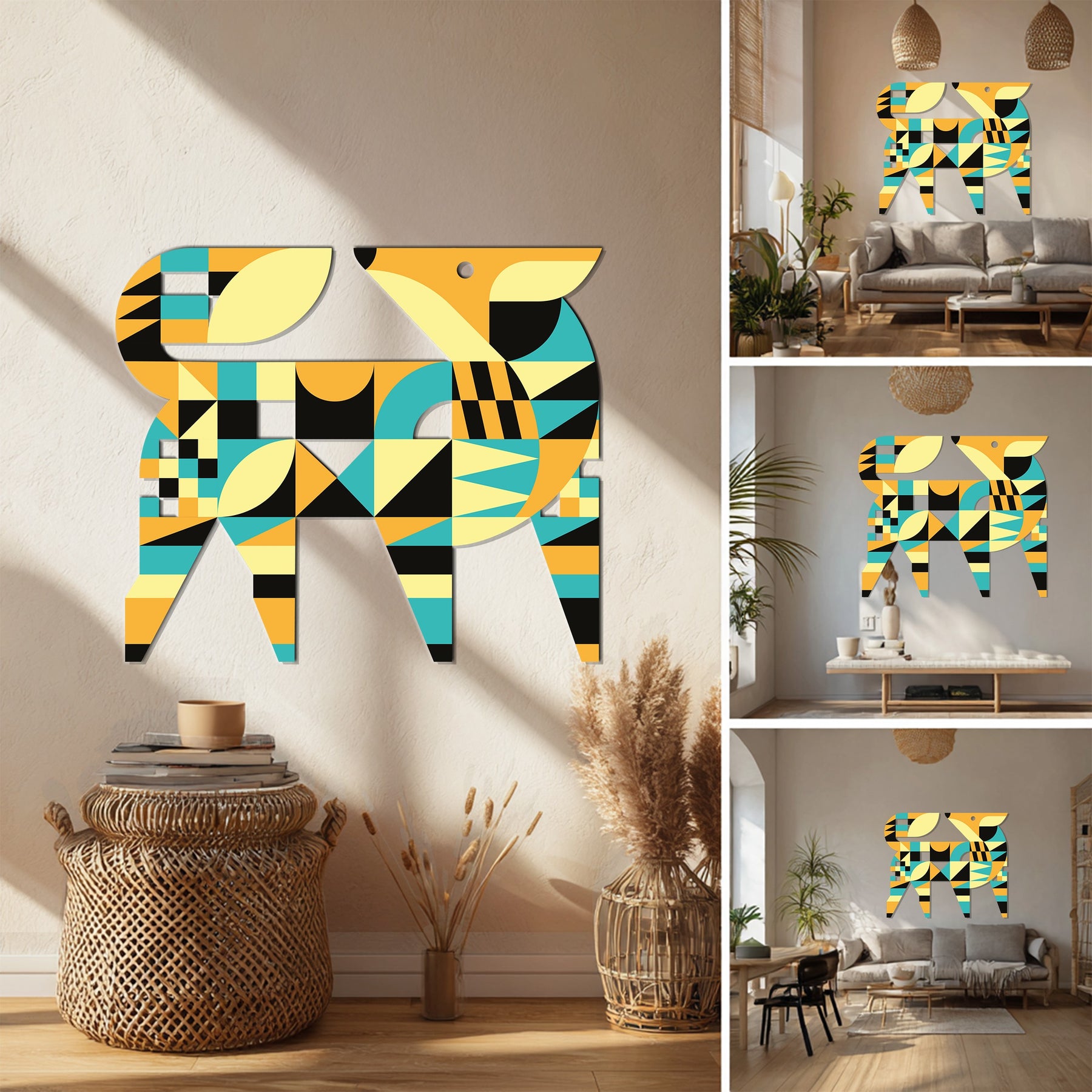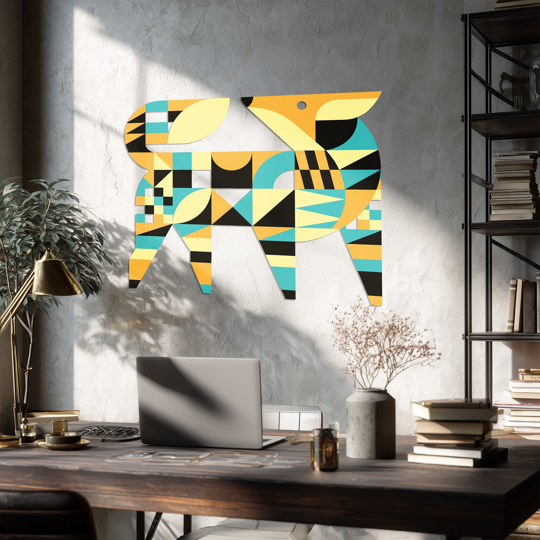 Expertly crafted from premium UV-protected metal, this piece ensures vibrant color longevity and exceptional durability. Its minimalist yet expressive structure creates a balance of nature and geometry, making it an ideal addition for those who love modern animal-inspired metal wall decor that combines sophistication with creativity.