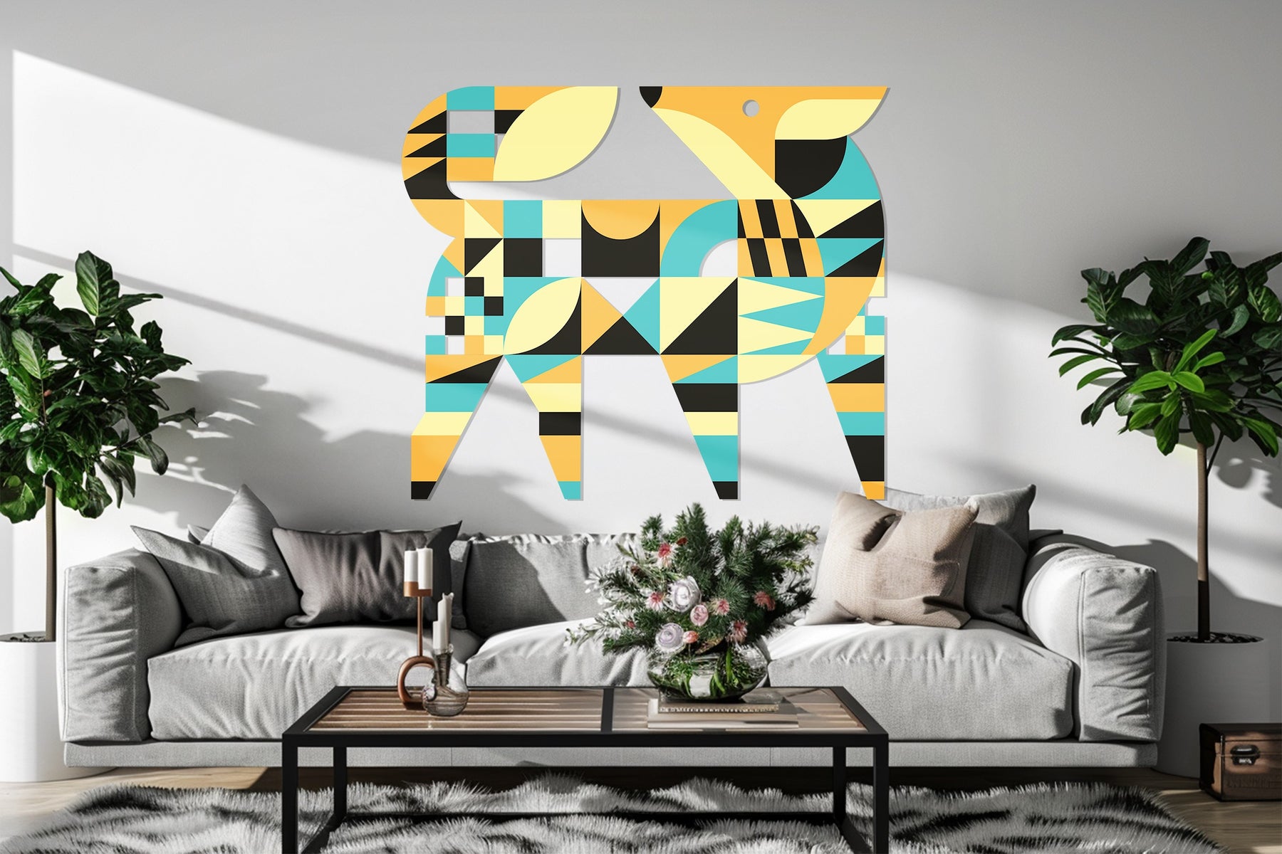 Bring a touch of artistic flair and playful energy to your walls with the Geometric Fox Metal Wall Art, a bold fusion of modern abstraction and wildlife inspiration. Featuring a harmonious mix of yellow, turquoise, black, and orange, this design captures the charm and curiosity of a fox through clean geometric forms — perfect for living rooms, creative studios, or children’s spaces.