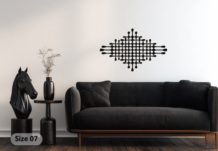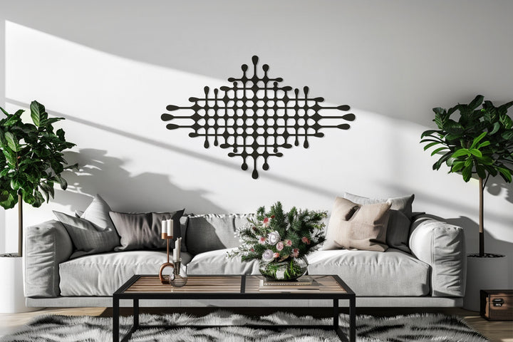 Bring the power of modern design into your home with the Geometric Fusion Metal Wall Art. Featuring elegant geometric patterns with droplet-inspired details, this piece perfectly reflects a minimalist and contemporary aesthetic. The bold contrast of black metal makes it a striking centerpiece in your living room, bedroom, or office.
