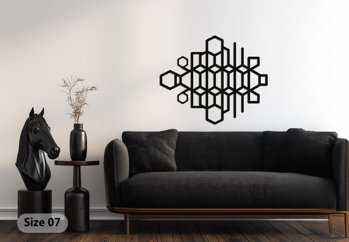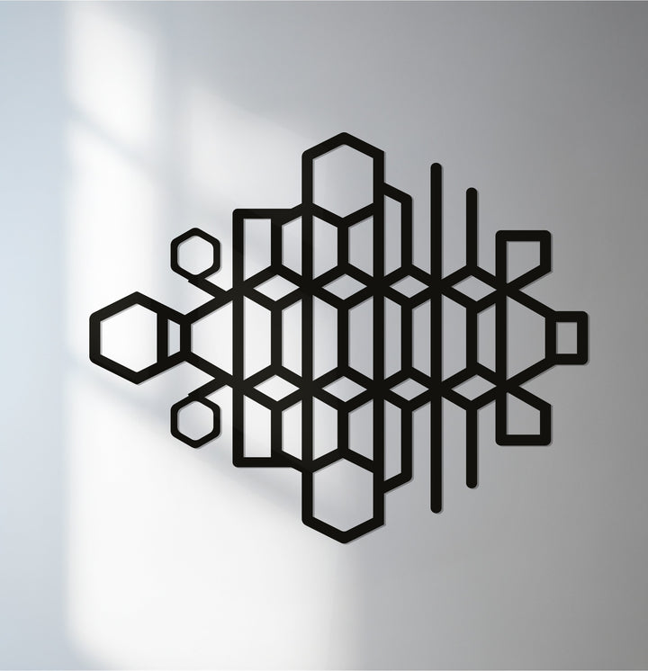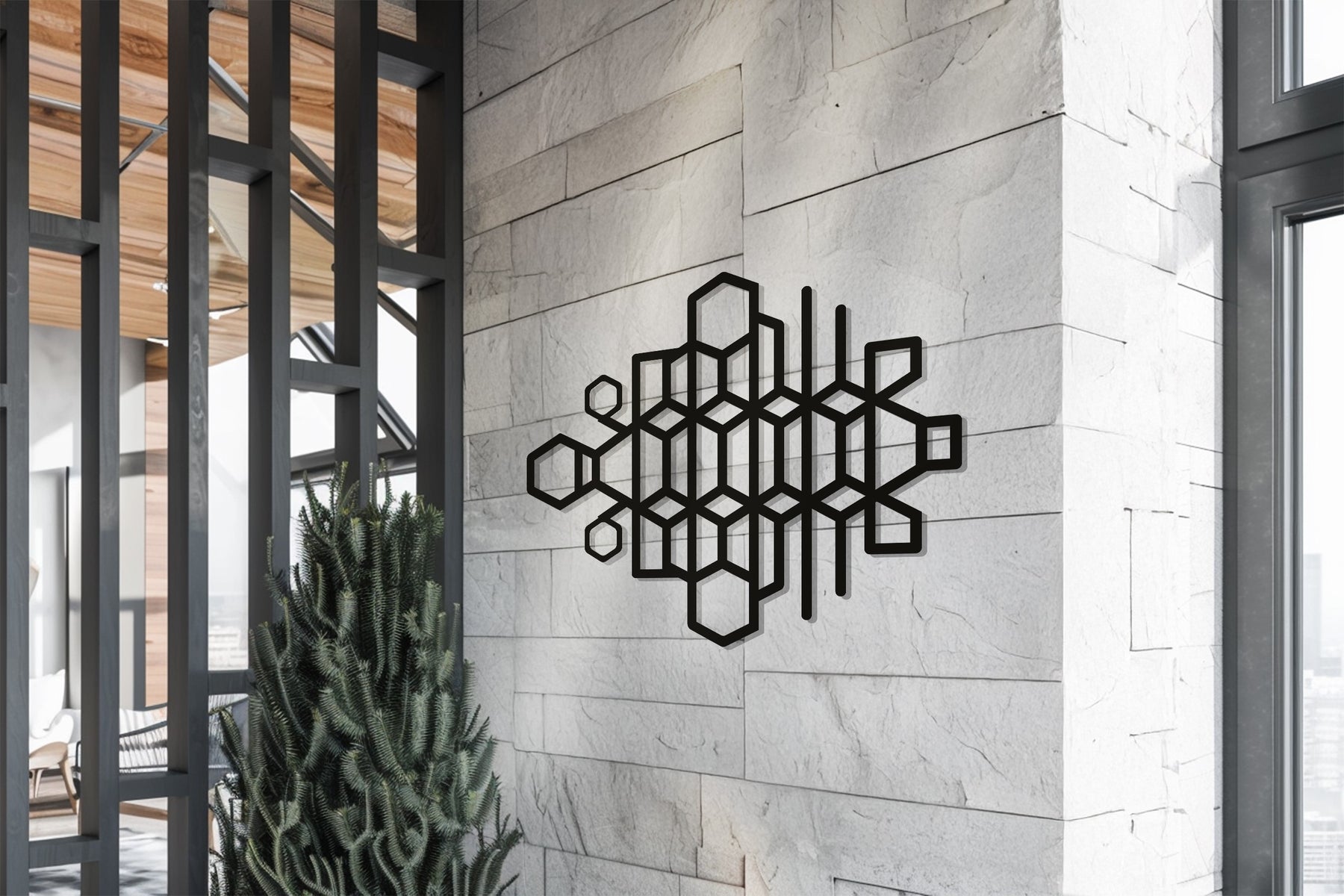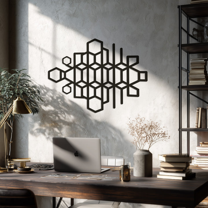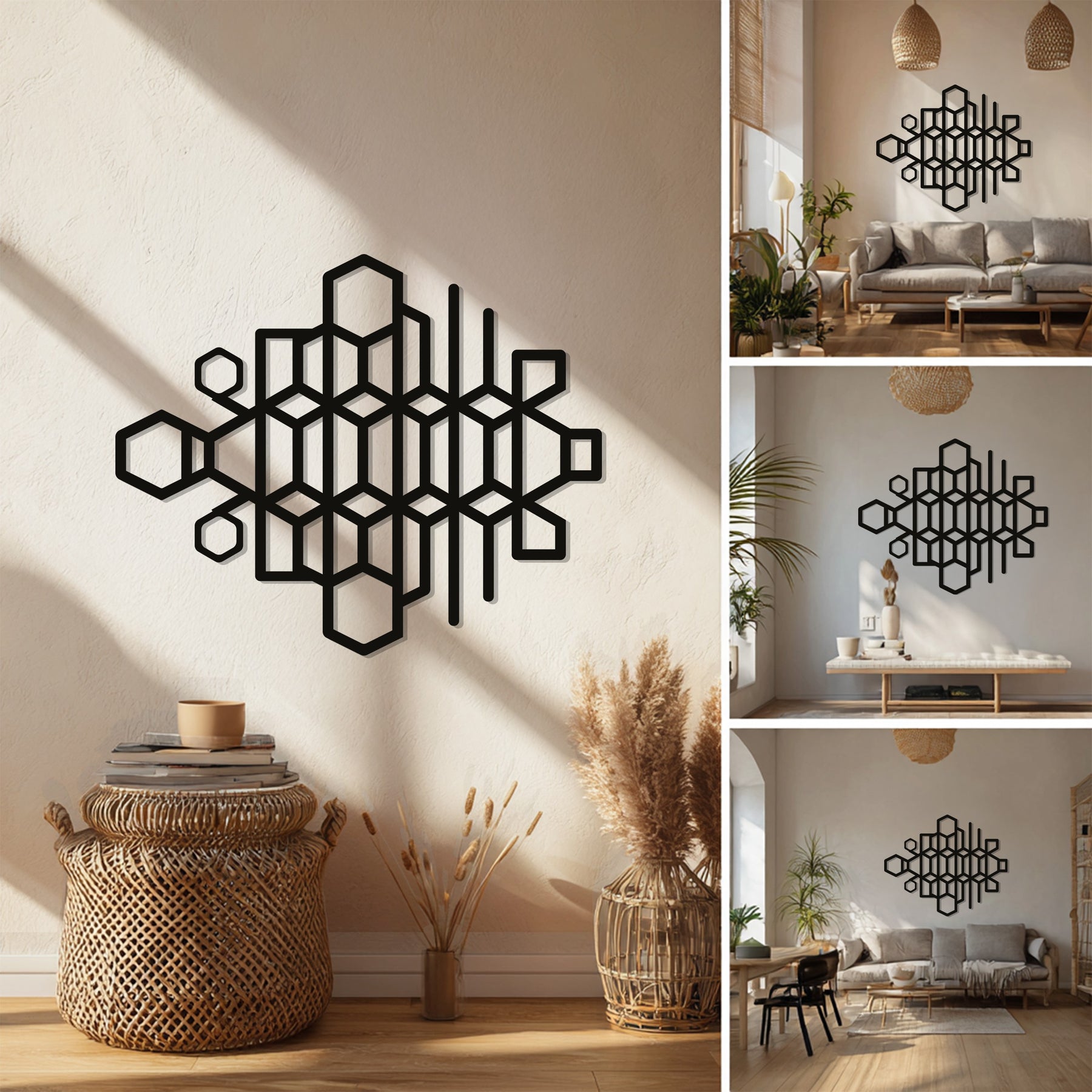 Elevate your interior with the bold precision of the Geometric Hexagon Metal Wall Art. Featuring a stunning arrangement of hexagons and sharp linear details, this design celebrates structure, balance, and modern artistry. Its clean symmetry and abstract rhythm make it a striking statement piece for living rooms, dining areas, bedrooms, or office spaces. Whether hung as a centerpiece or paired with other décor, this wall sculpture brings a sense of order and sophistication, blending seamlessly with contemporary, minimalist, and industrial interiors.