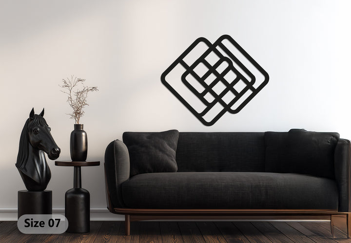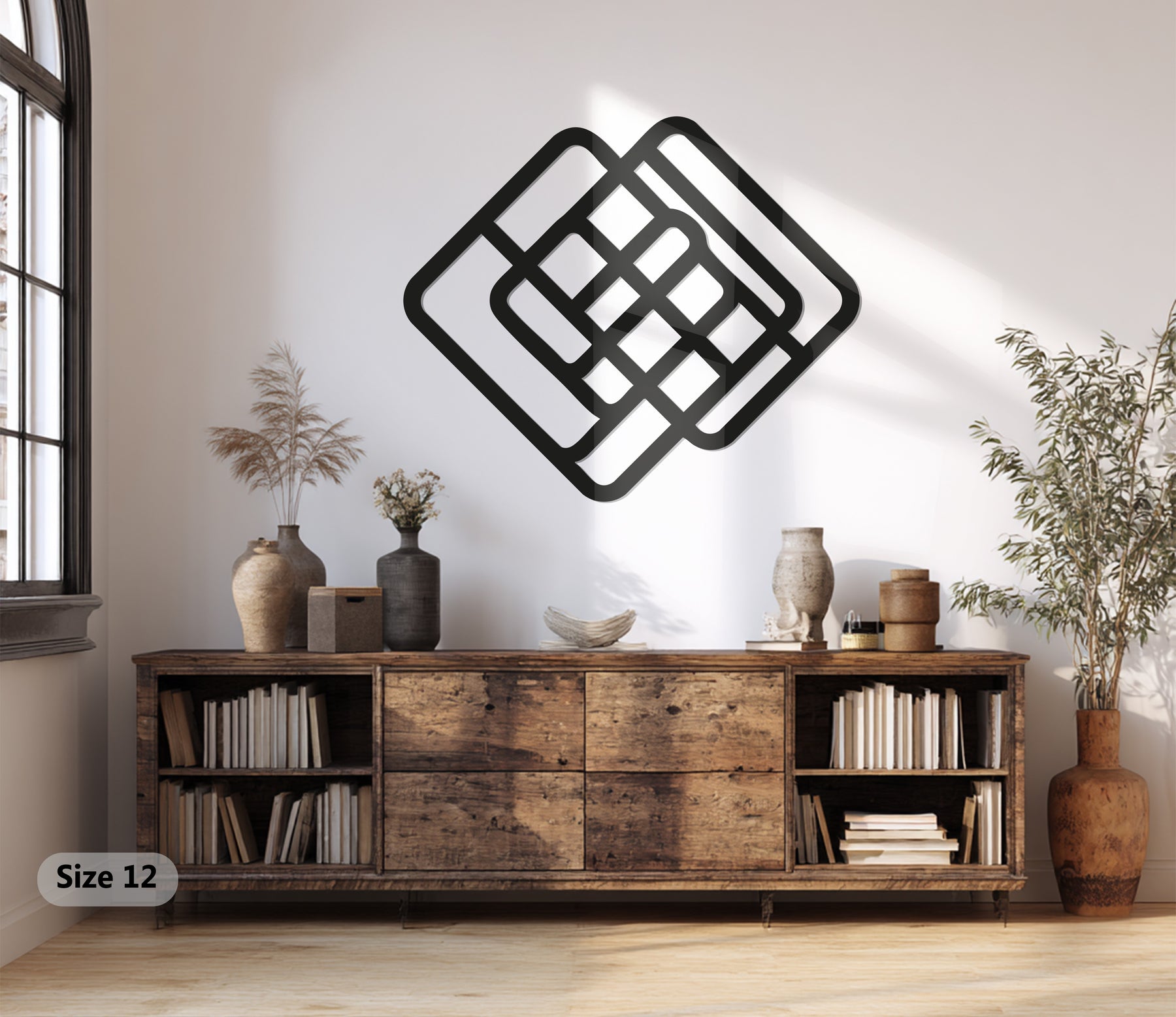 Elevate your walls with the sleek elegance of this Geometric Woven Squares Metal Wall Art. Featuring a layered diamond-square design that interlocks like a modern weave, this piece embodies harmony, connection, and balance. Its abstract form makes it a striking centerpiece for contemporary interiors, while the clean black lines ensure it blends seamlessly with minimalist and modern décor styles.