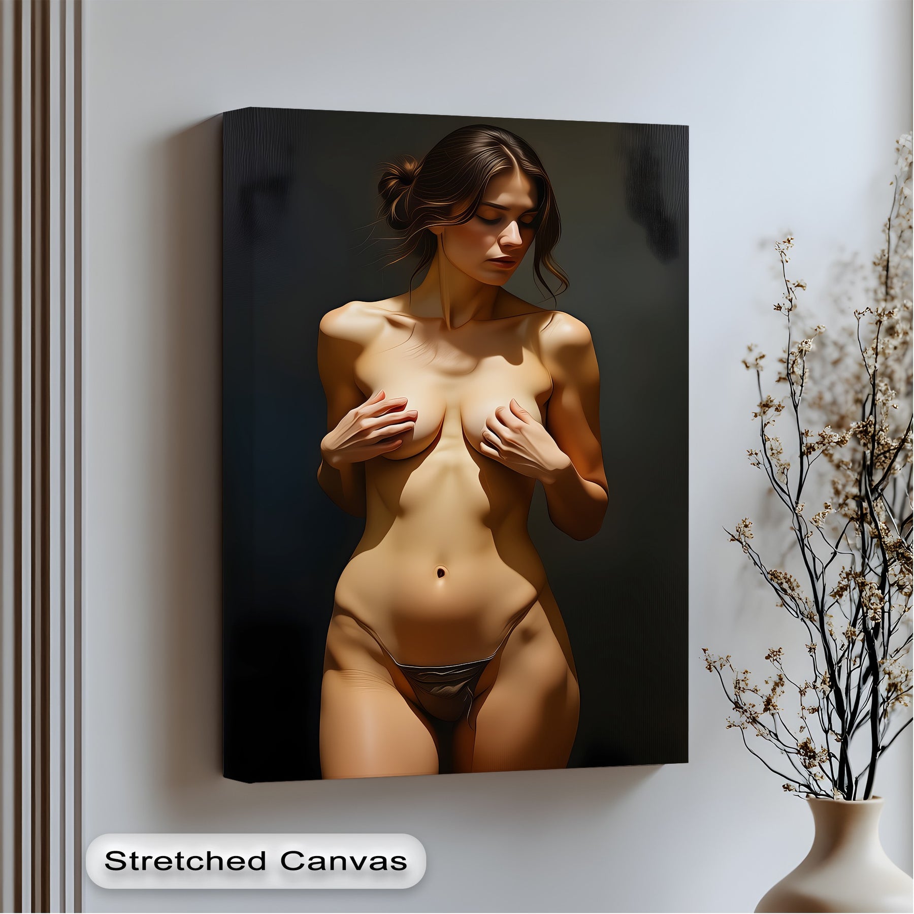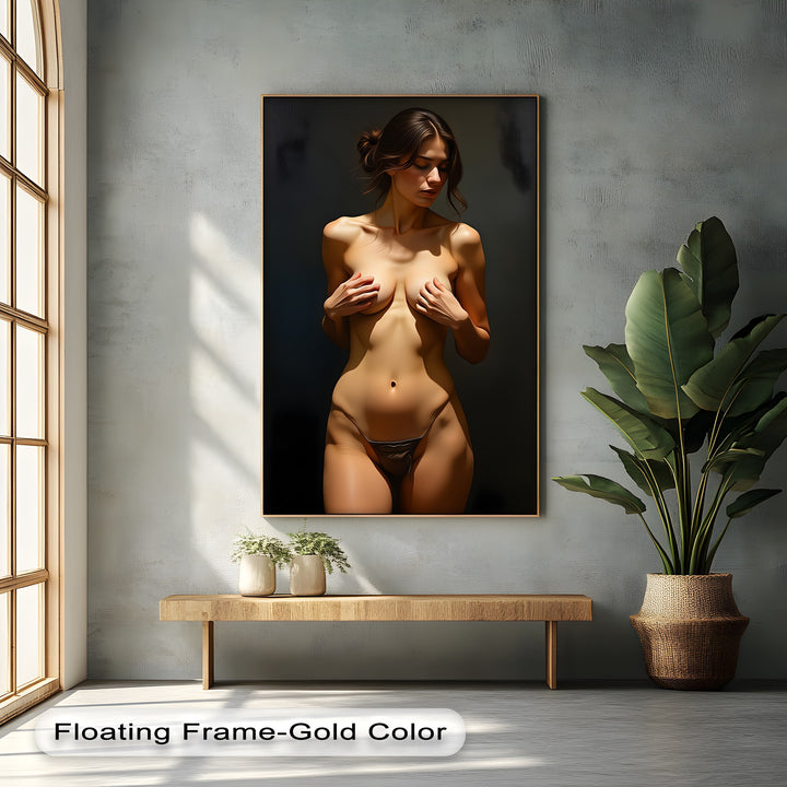 Experience the captivating beauty of Golden Allure, a refined nude canvas wall art that celebrates the essence of elegance and intimacy. The delicate lighting highlights every graceful contour, while the soft shadows and natural tones create an atmosphere of serenity and sophistication. Perfect for those who appreciate fine artistic expression, this piece transforms your interior into a modern gallery space.