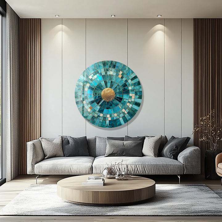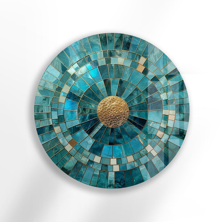 Golden Core – Turquoise Radiance Round Glass Wall Art