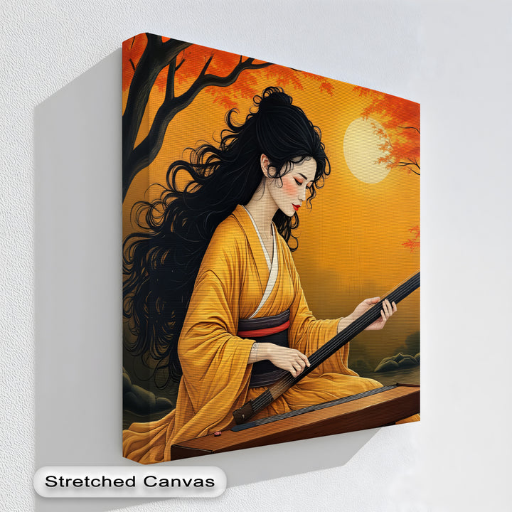 Golden Harmony – Japanese Autumn Moon Geisha Canvas Wall Art | Canvas Art