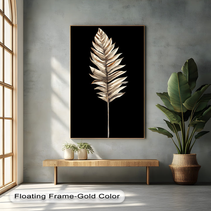 Golden Palm – Modern Metallic Leaf Canvas Wall Art | Framed Art