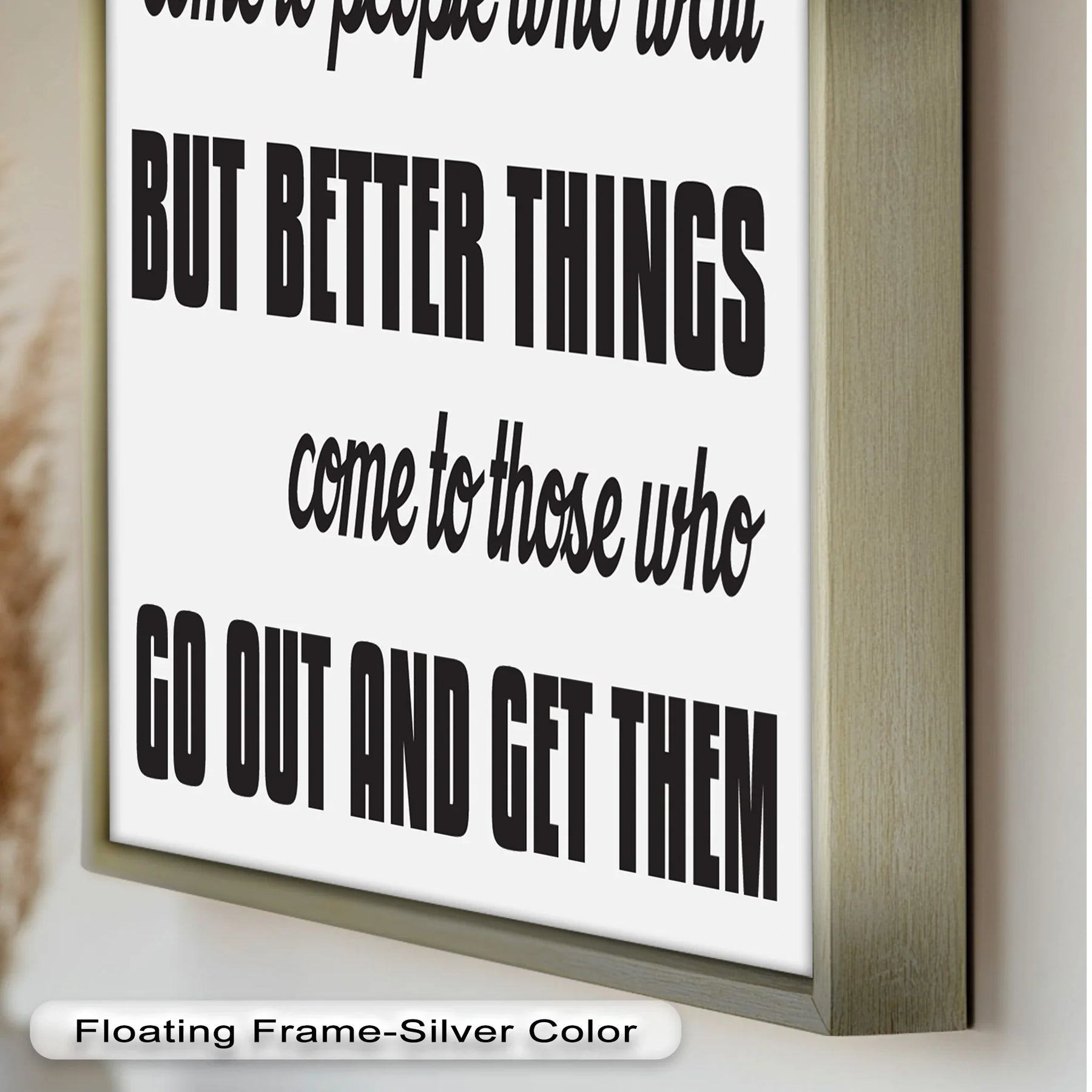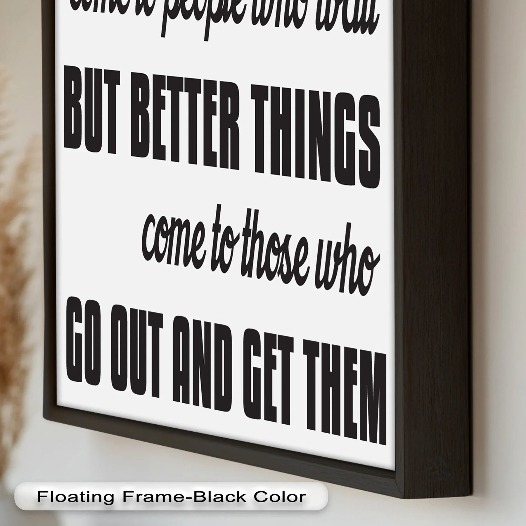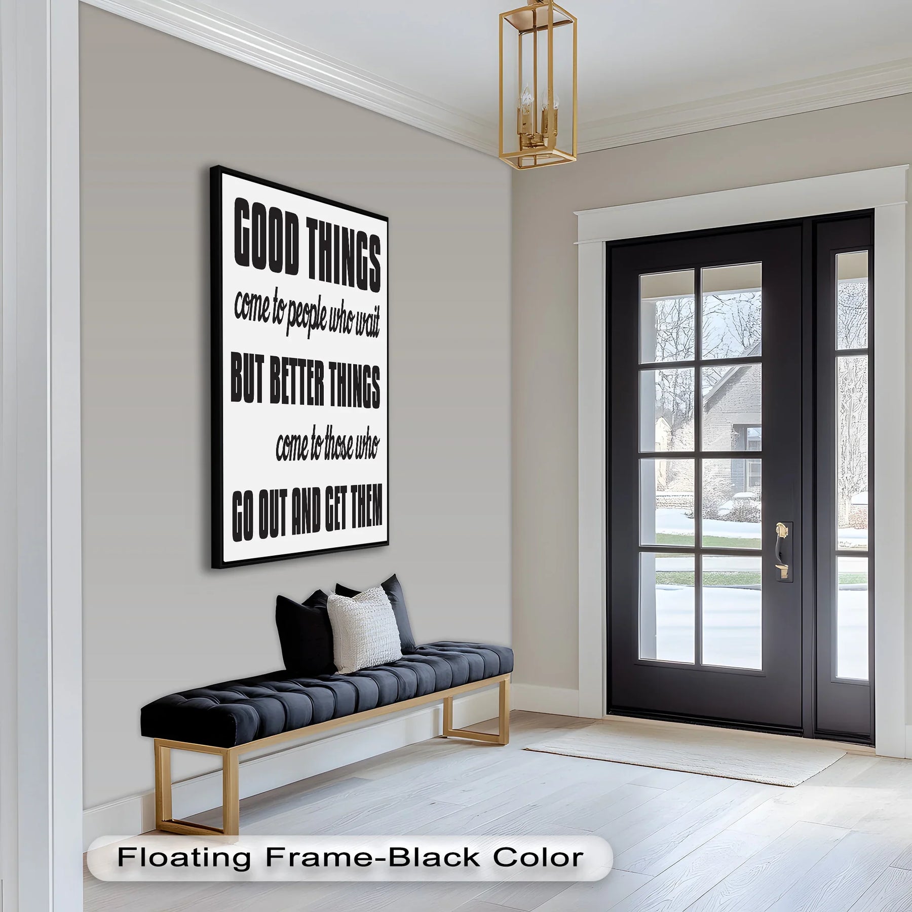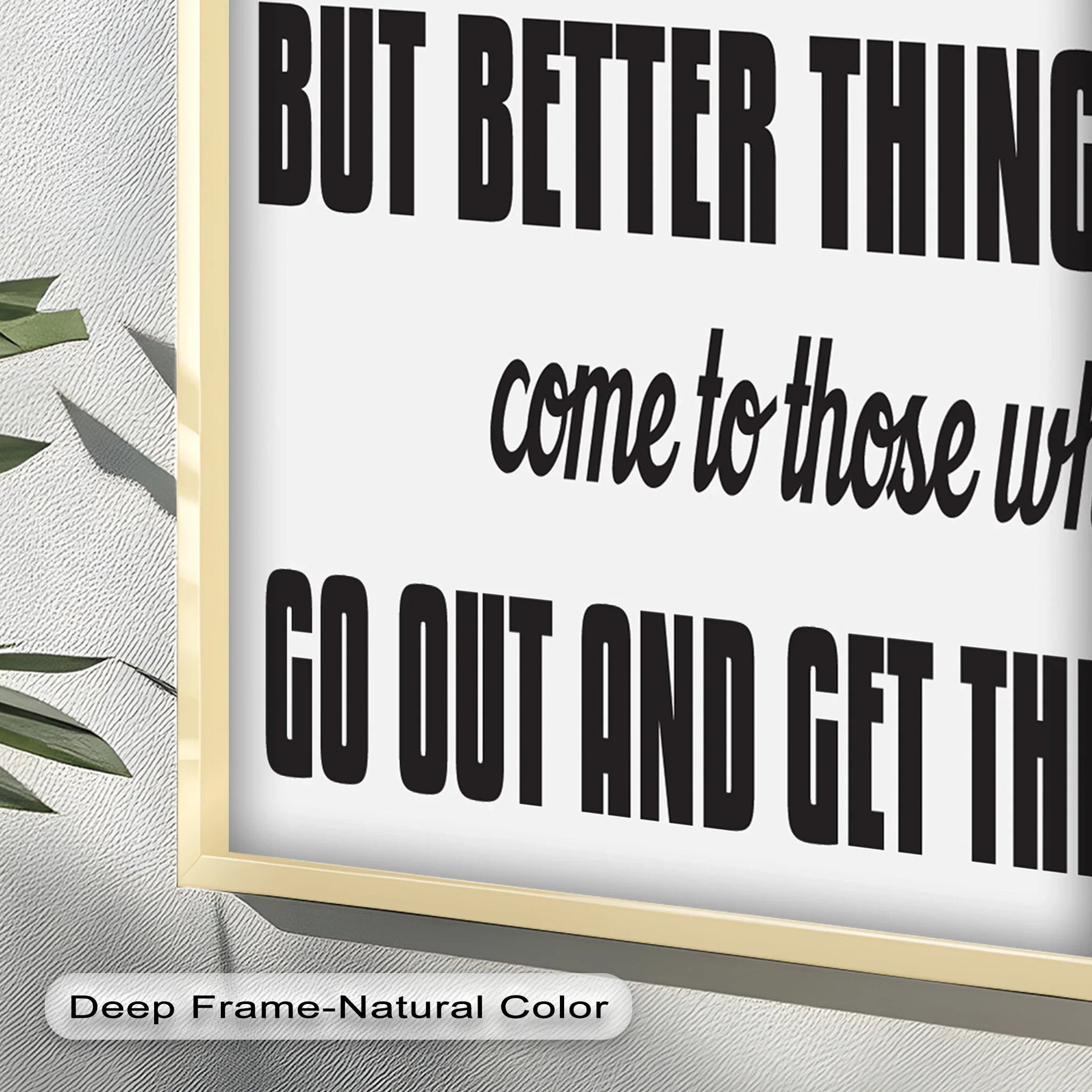 Fuel ambition and drive with this bold quote piece: Good Things Come to People Who Wait, But Better Things Come to Those Who Go Out and Get Them. Designed to inspire action and courage, this motivational wall art is ideal for home offices, gyms, classrooms, or creative studios.