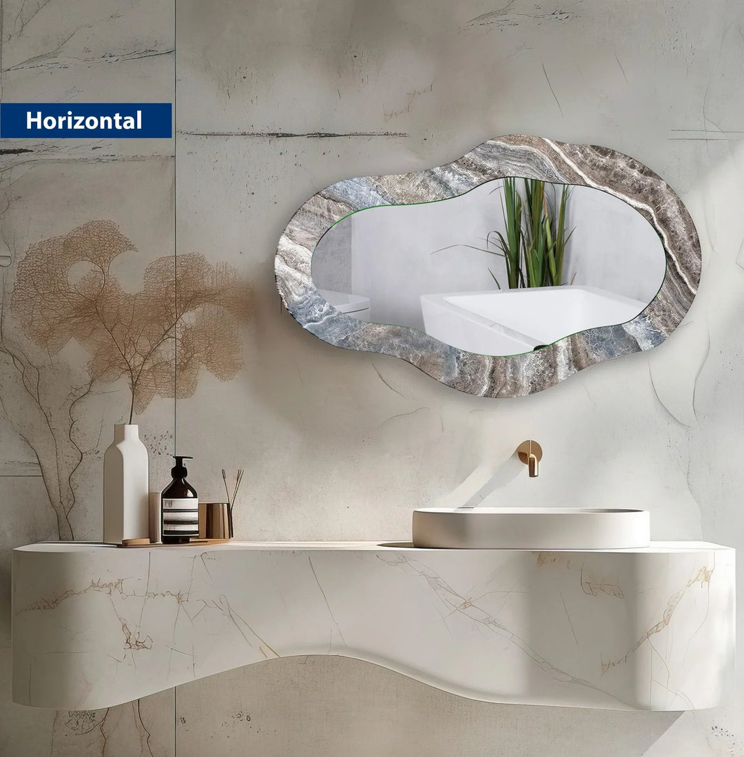 Introduce elegance to your space with the Gray and White Asymmetrical Wall Mirror. Its flowing, organic shape and marbled gray and white patterns offer a stunning focal point for any room. The seamless blend of neutral tones complements modern, industrial, and minimalist interiors effortlessly.