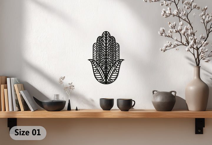 Hamsa Hand Metal Wall Art – Black Geometric Wall Sculpture