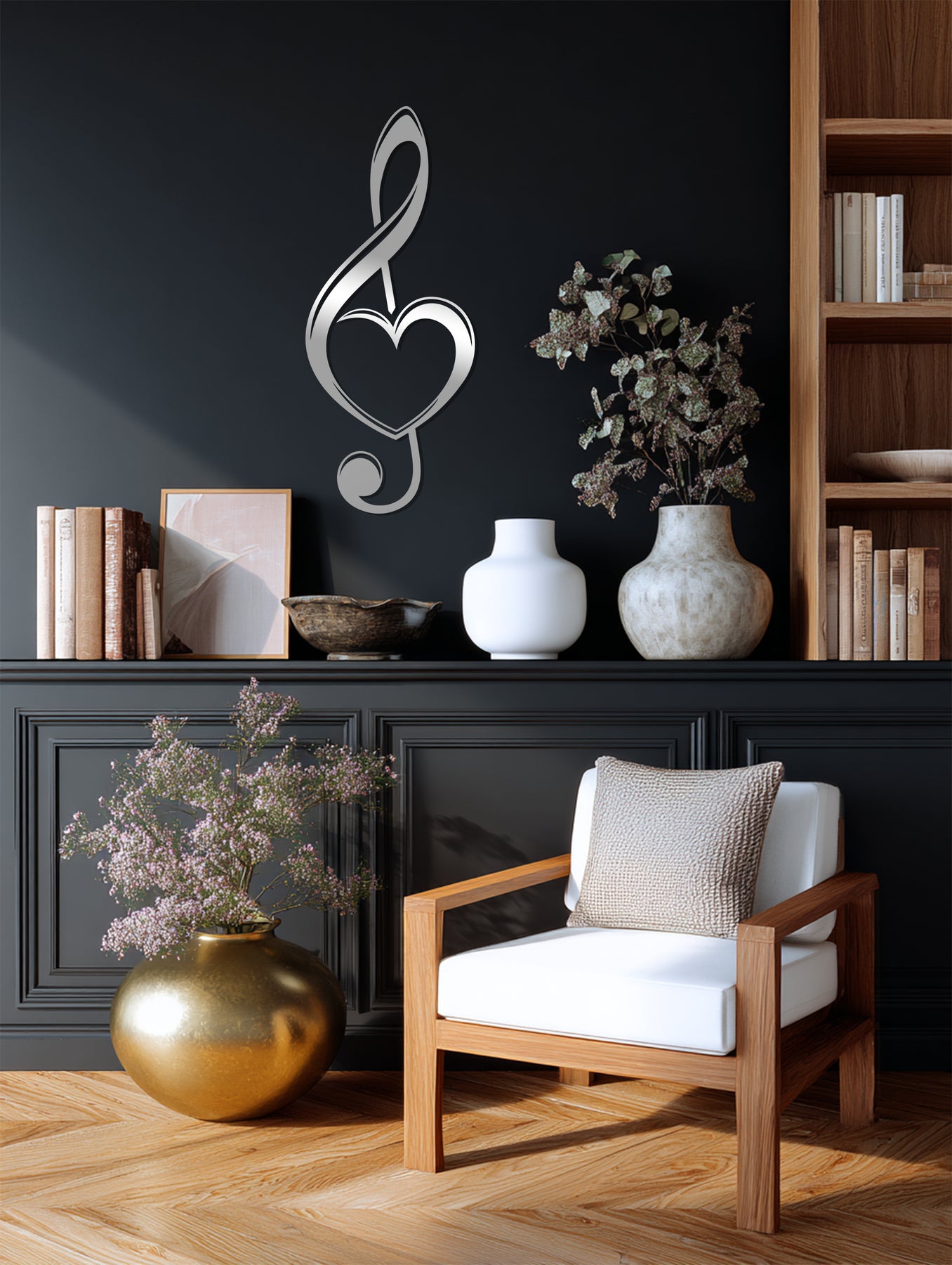 Heart Treble Clef Metal Wall Art – Musical Note Decor