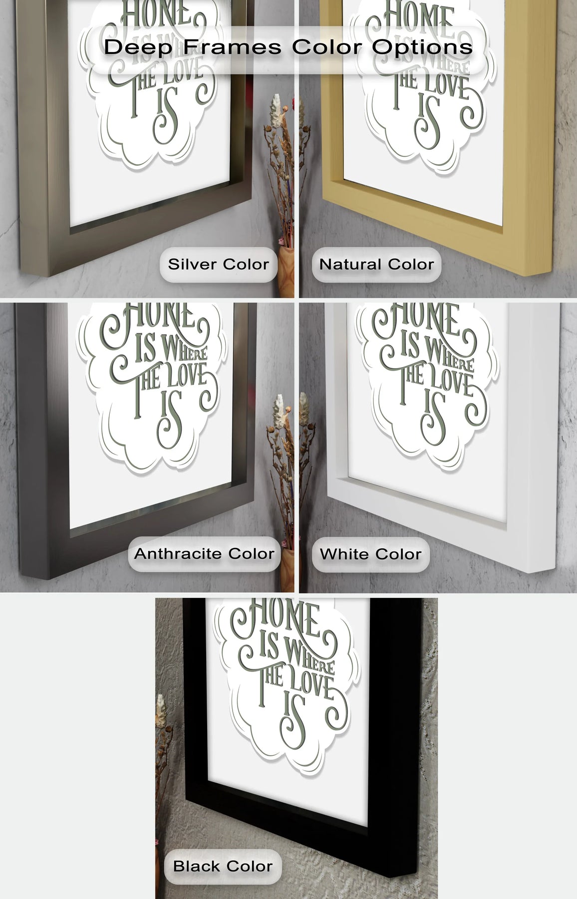 The Deep Frame offers a refined, recessed effect, with the artwork embedded 1.5 cm into its 2 cm thick structure. This design creates a subtle depth, enhancing the painting's presence without overpowering your space. Ideal for those who appreciate a clean and modern aesthetic.