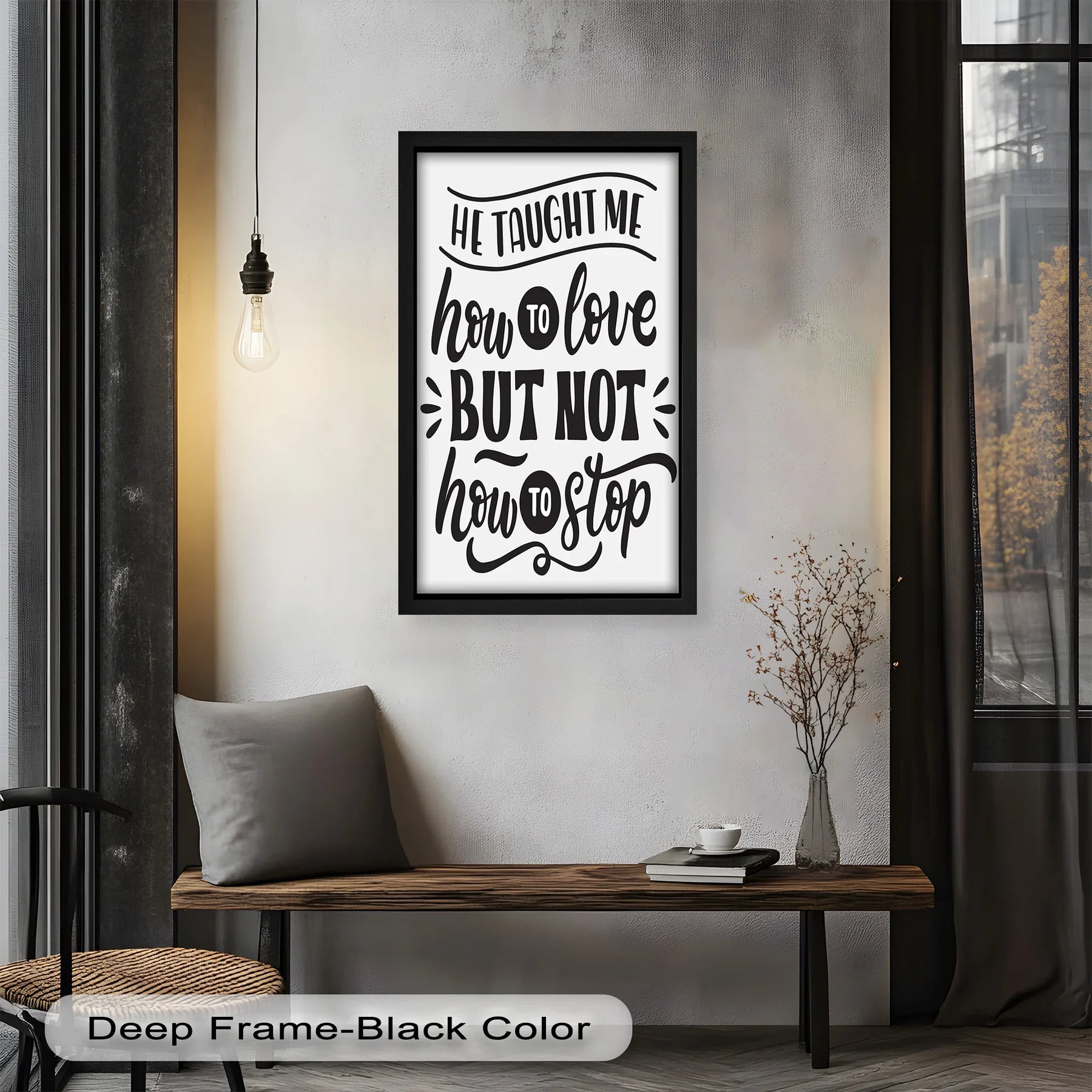Romantic Black & White Oil Painting – Deep Love Quote Wall Decor