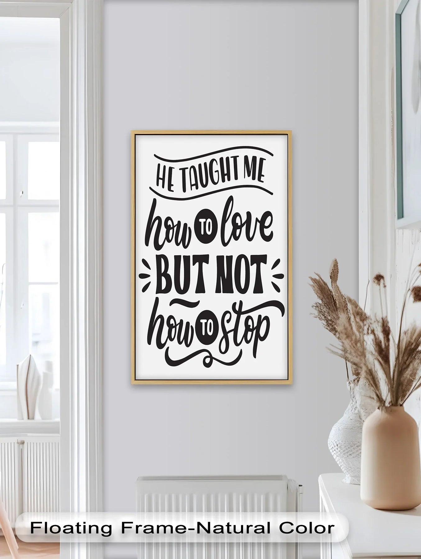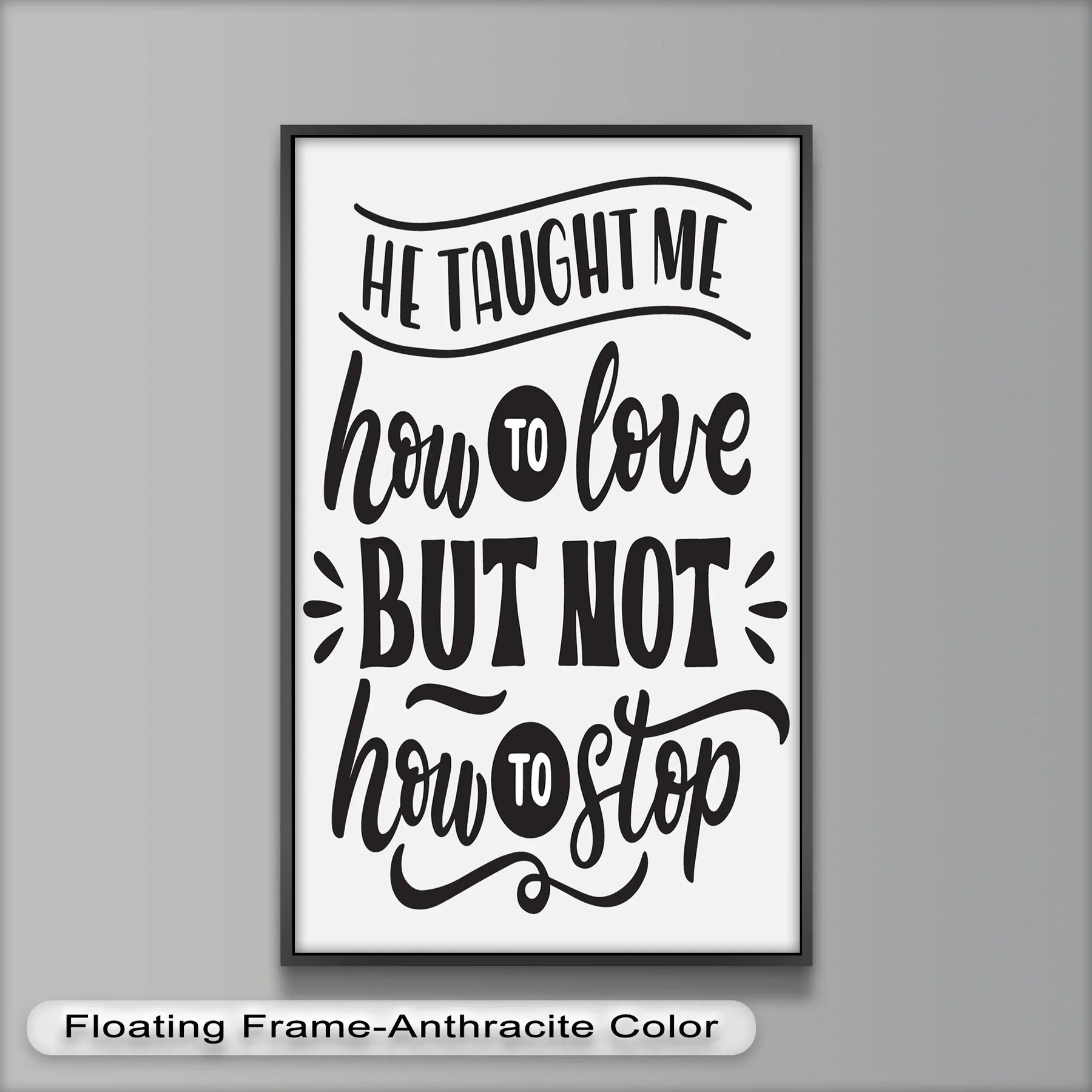 Emotional Typography Oil Painting – “He Taught Me How to Love” Black & White Wall Art