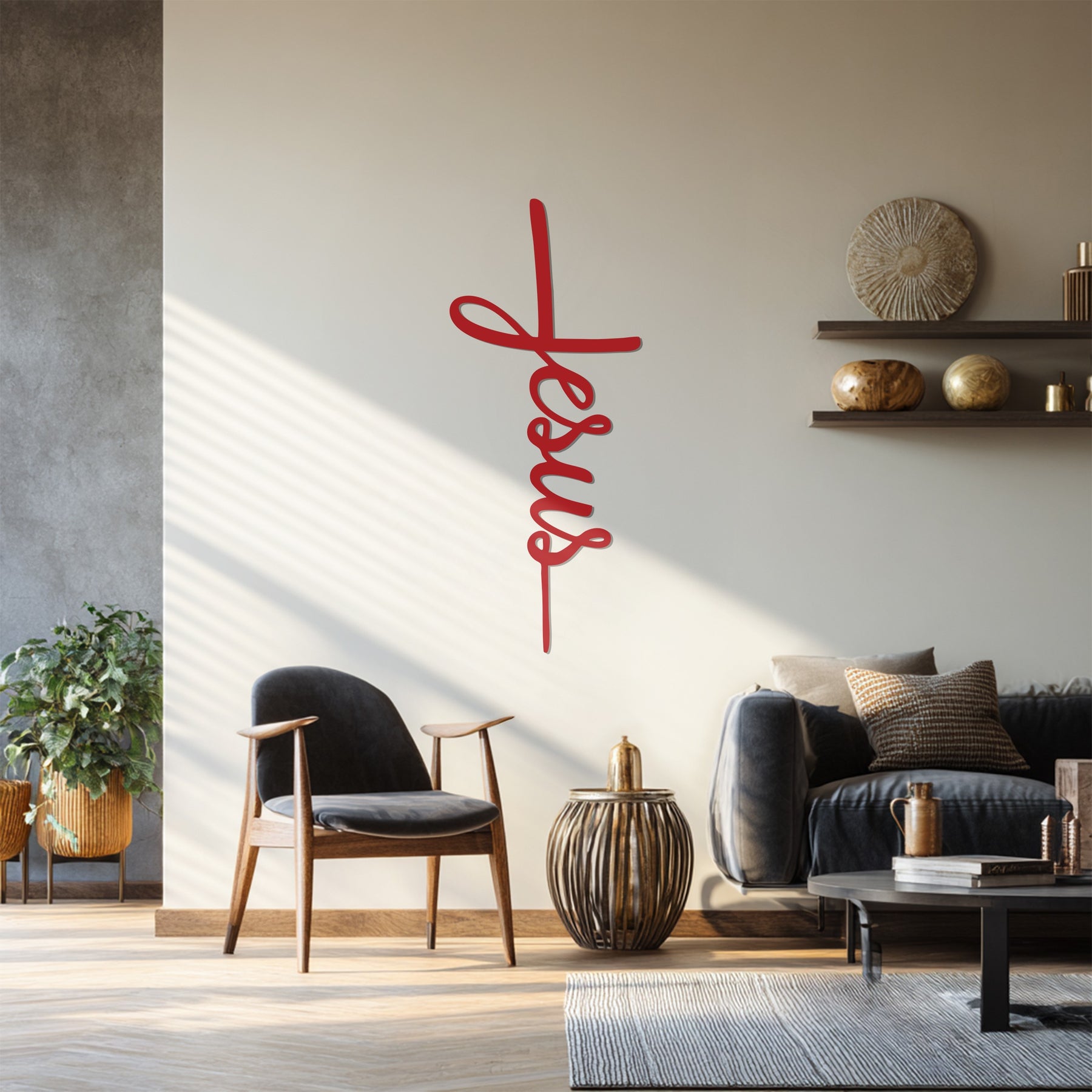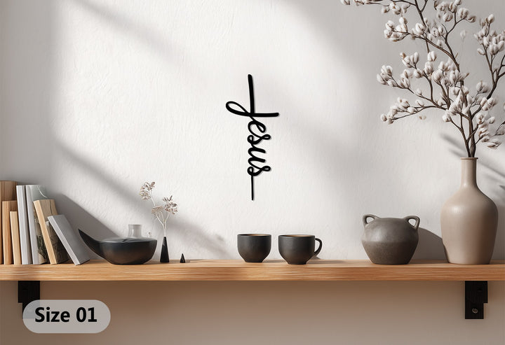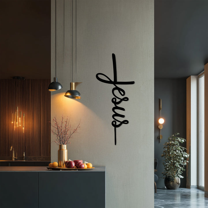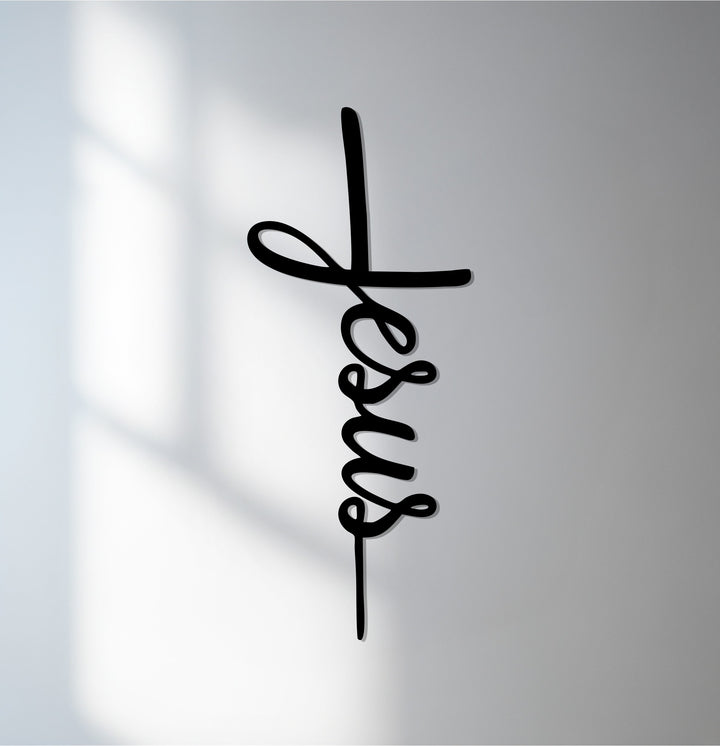 Celebrate your faith with this Jesus Cross Metal Wall Art, a graceful design where the word “Jesus” forms into the shape of a cross. This piece blends simplicity with spiritual meaning, making it a timeless addition to any Christian home.