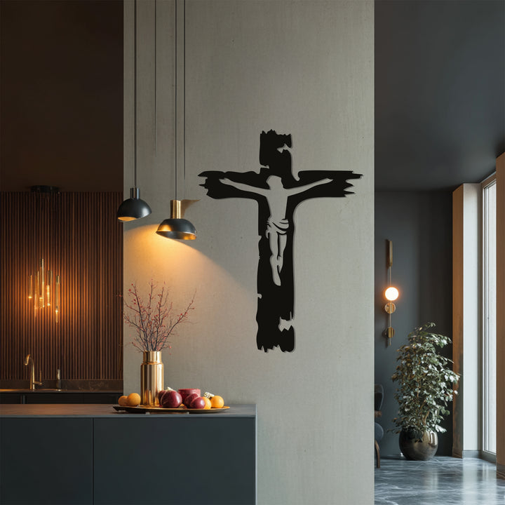 Bring faith and inspiration into your home with this Jesus on Cross Metal Wall Art. Designed in a striking black silhouette, this crucifix artwork captures the essence of Christianity with its bold and minimalist design.