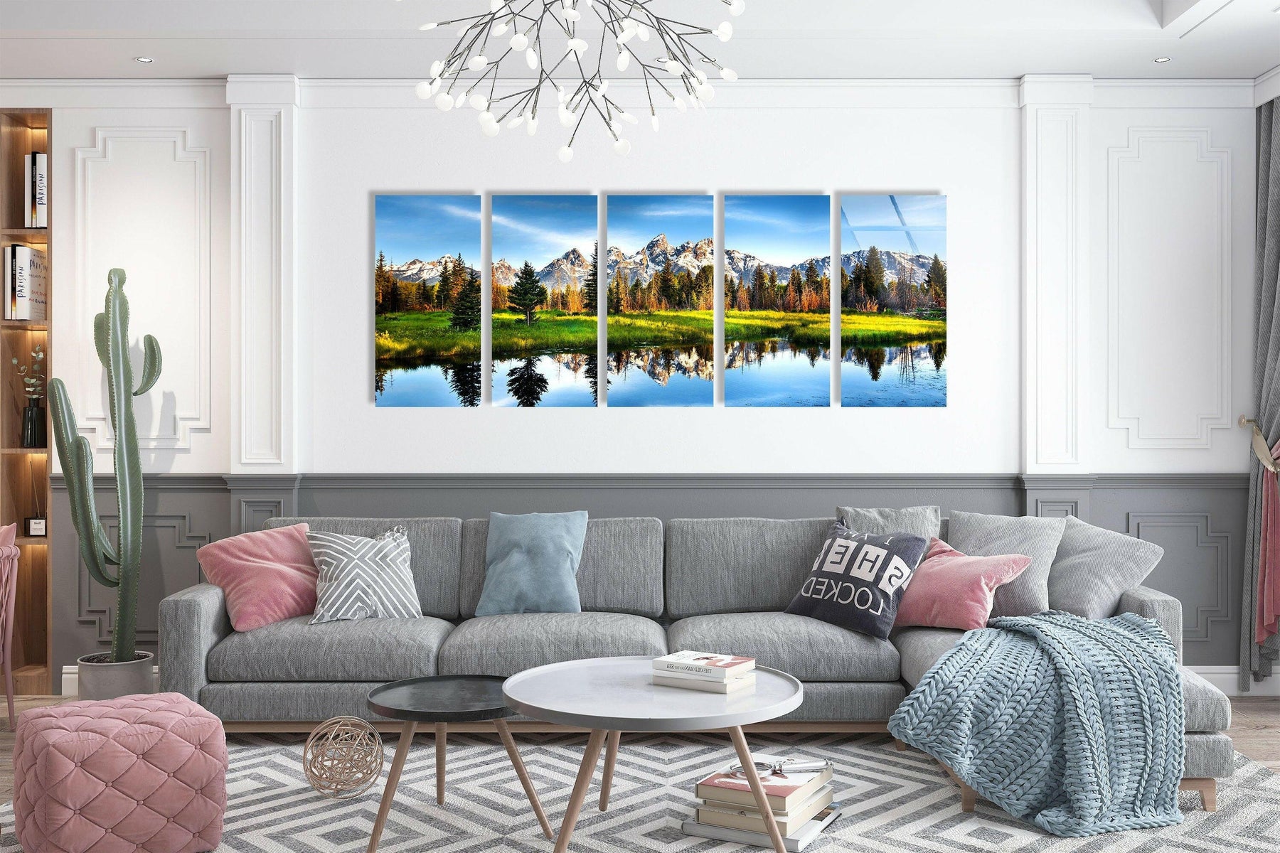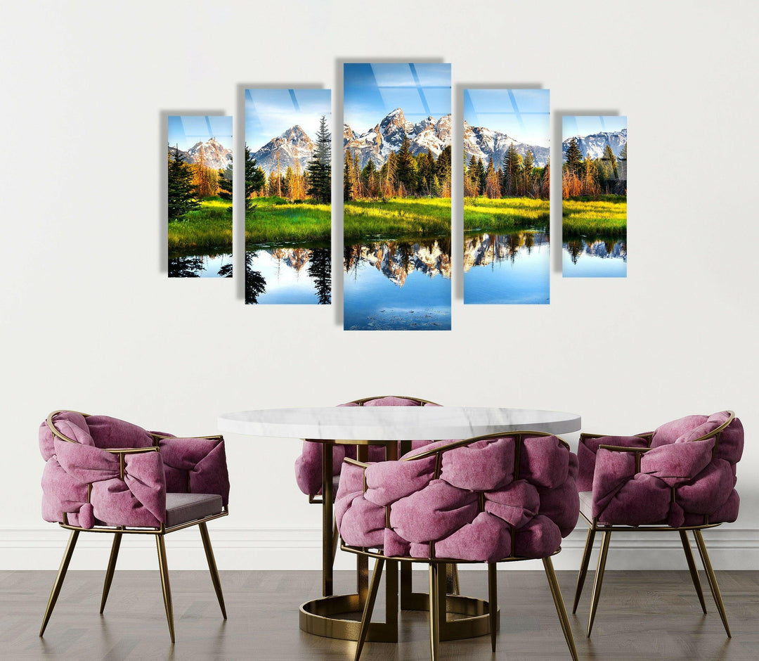 Lake, Trees and Mountain Nature Landscape Glass Wall Art – 5 Piece