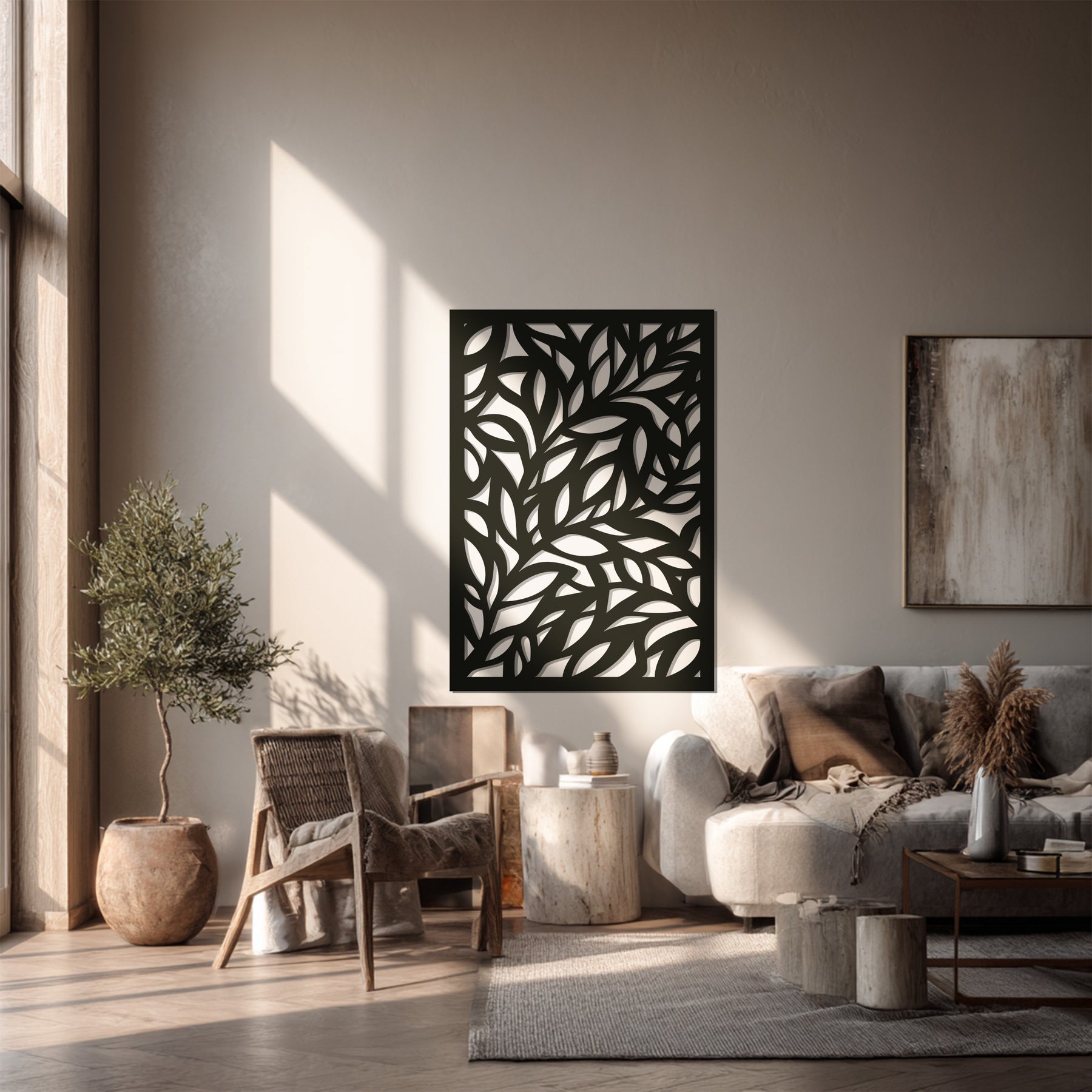 Bring the beauty of nature indoors with this Leaf Panel Metal Wall Art. Featuring an intricate botanical leaf pattern, this black metal wall decor adds modern elegance and organic charm to any room. Perfect for those seeking large metal wall art, a stylish metal wall hanging, or a unique wall sculpture for the living room, bedroom, office, or hallway.