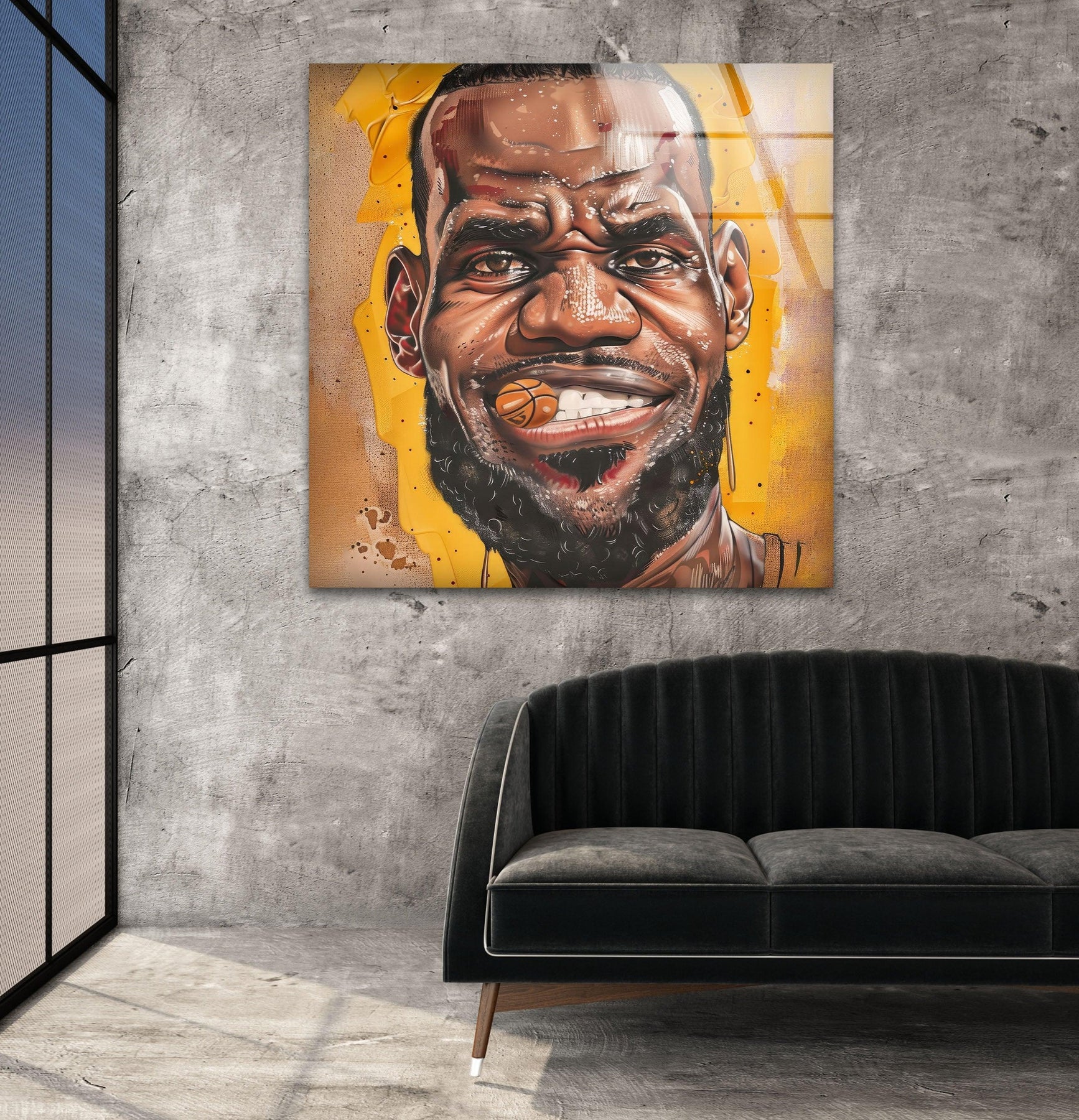 Add a playful yet powerful vibe to your space with this Lebron James sports prints. This Glass Wall Art brings a vibrant depiction of the iconic basketball player to your decor, creating an atmosphere filled with energy, ambition, and charisma. A great statement piece for basketball lovers, sports-themed rooms, or game areas.